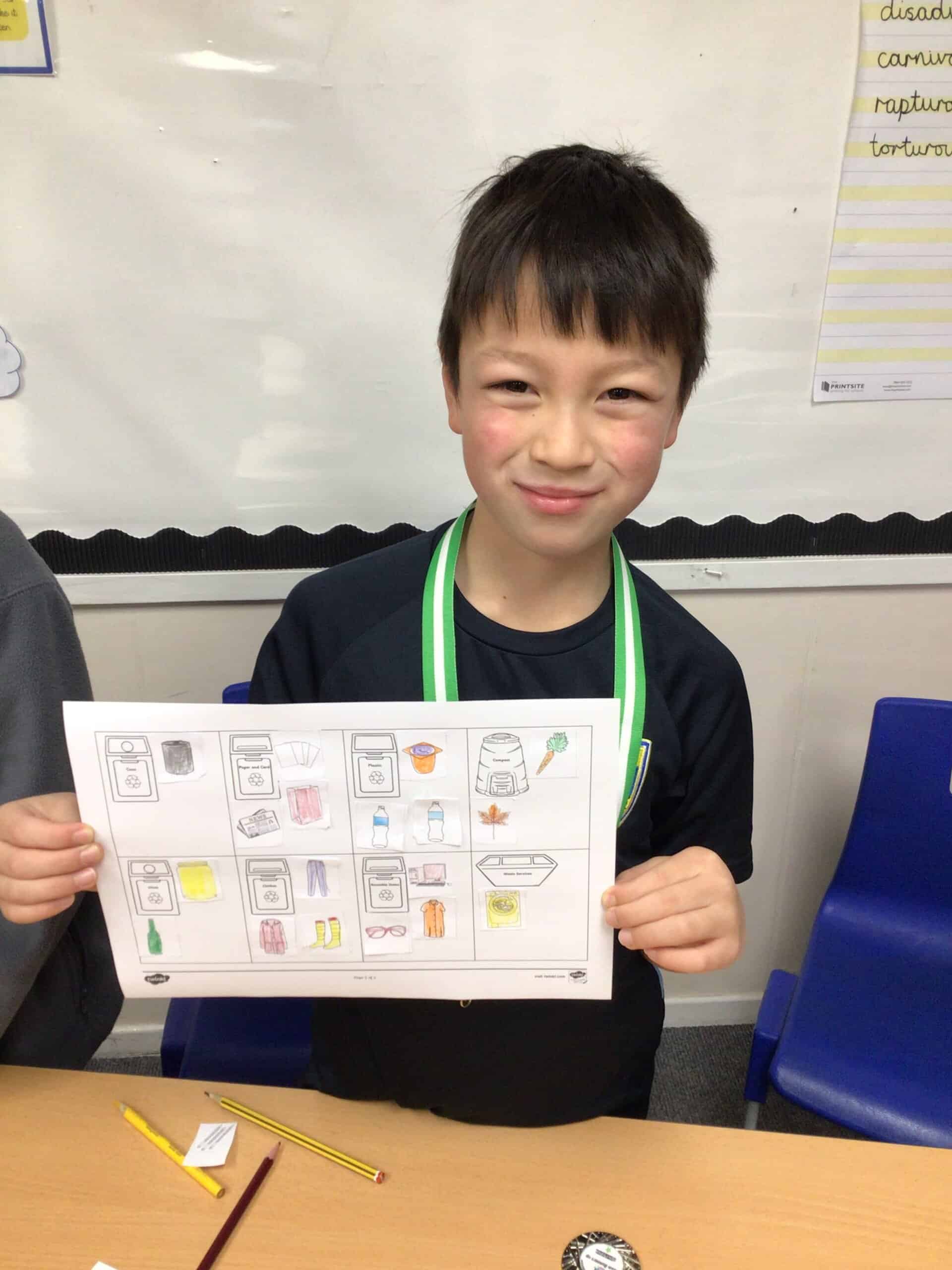 We learned about the different materials that can be recycled. We discussed why recycling is important for reducing waste and shared examples of items we use in school and at home that can be reused or recycled.