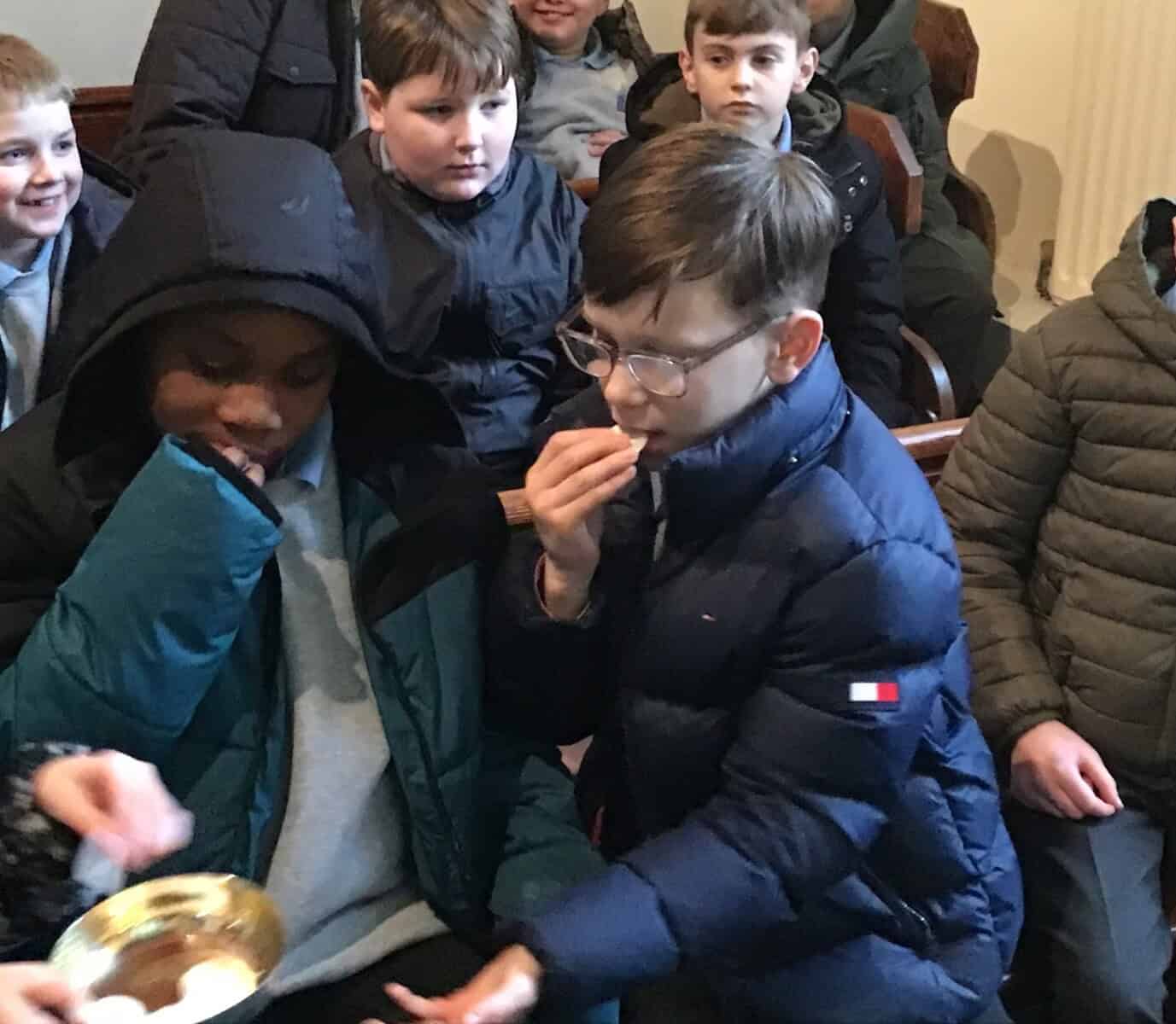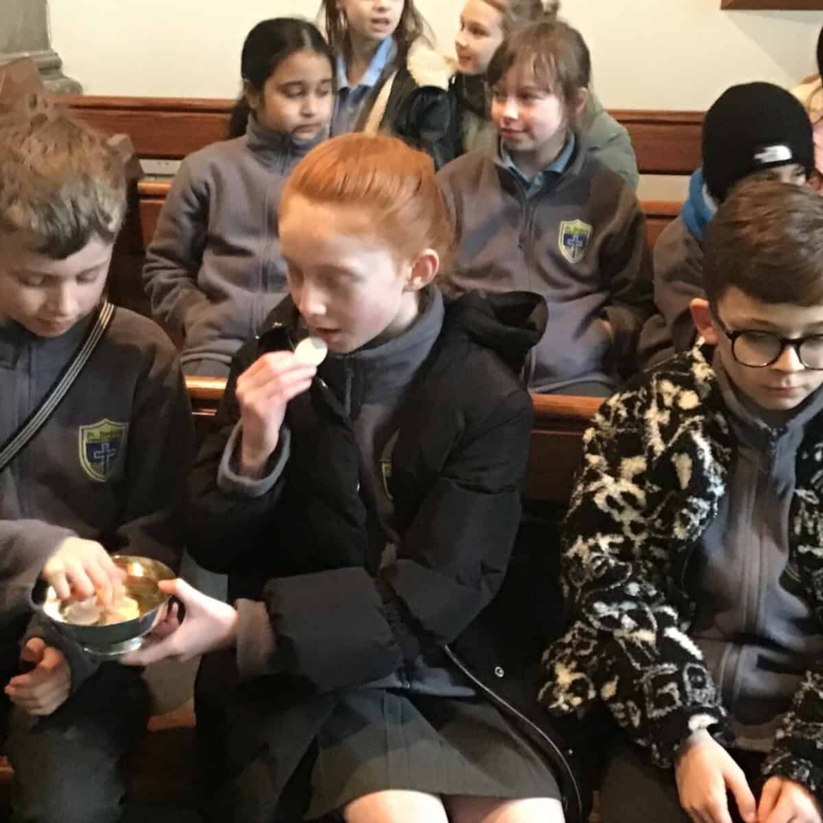 Fr Bill showed the children some of the books used throughout the Liturgy of the Word and the sacred vessels used in the Liturgy of the Eucharist. They were even allowed to taste the unconsecrated host.