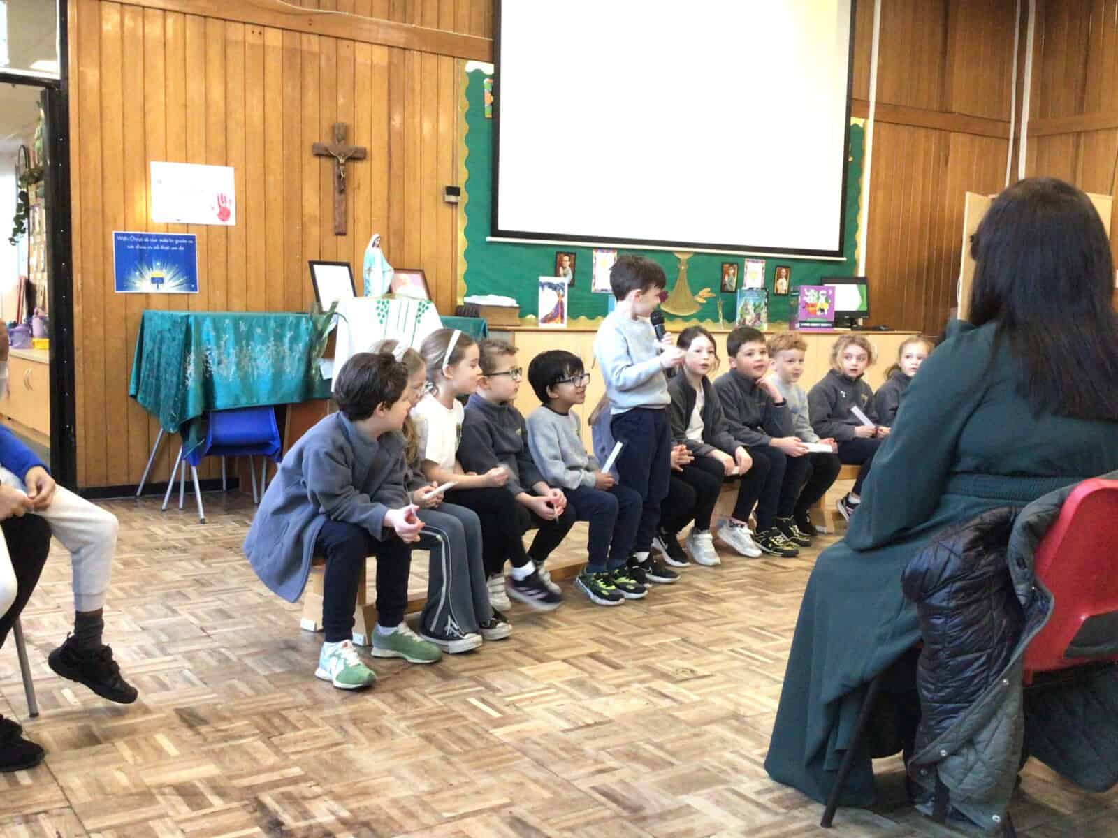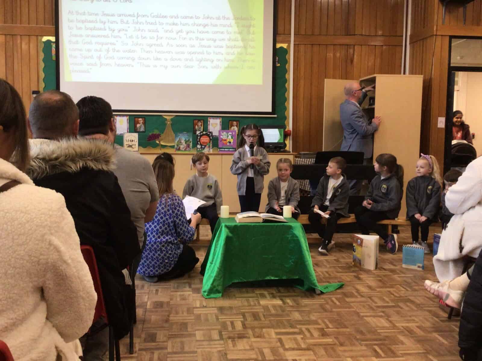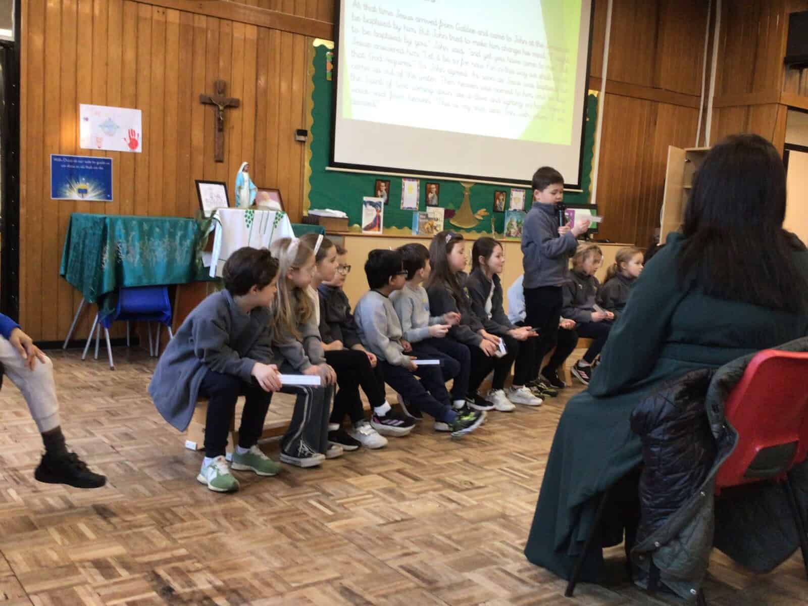 The highlight of their learning was their excellent retelling of the story of Jesus’ Baptism. With great enthusiasm and confidence, the children shared this important moment in the life of Jesus, projecting their voices excellently and bringing the story to life for everyone to enjoy.