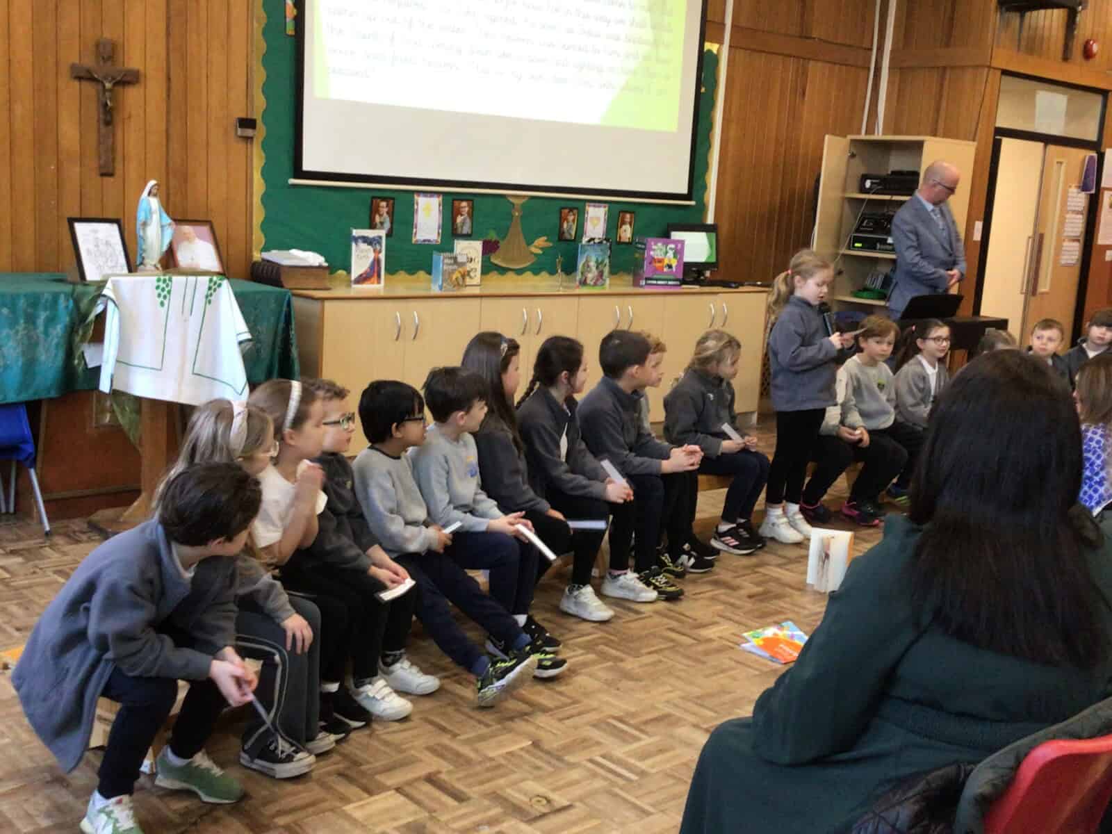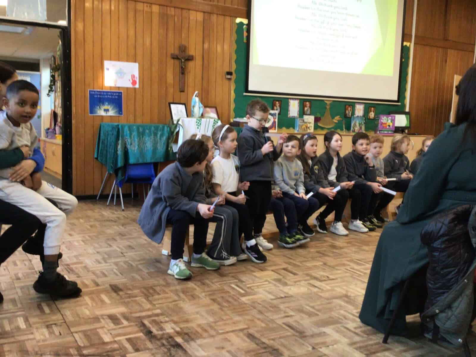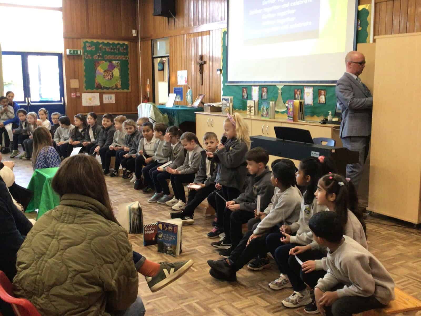 The highlight of their learning was their excellent retelling of the story of Jesus’ Baptism. With great enthusiasm and confidence, the children shared this important moment in the life of Jesus, projecting their voices excellently and bringing the story to life for everyone to enjoy.