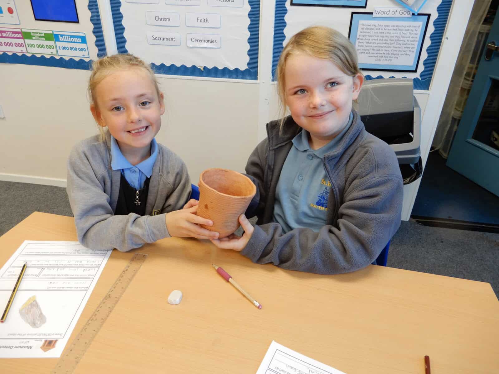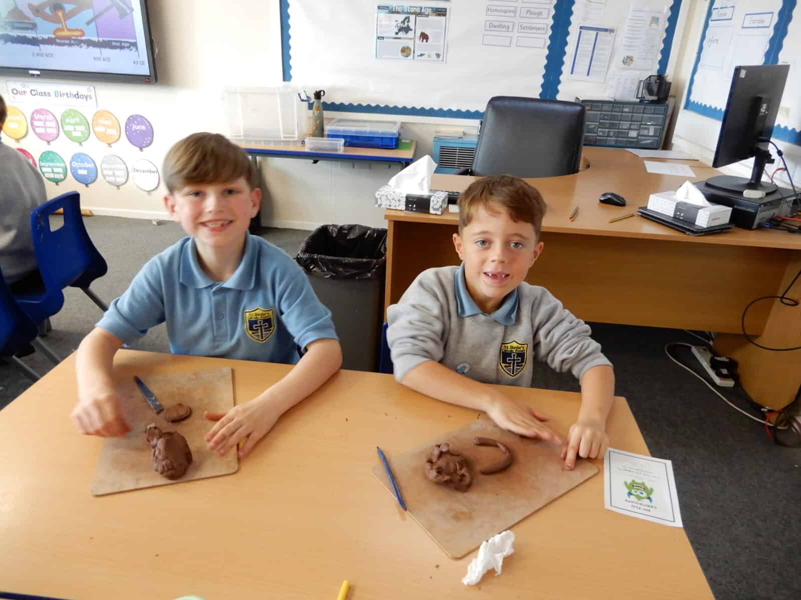 We learned about the chronology of Prehistory and analysed an exciting range of ancient artefacts. Y3 constructed a skeleton and investigated what we could deduce from the bones. Our young historians also used clay to mould some creative Bronze Age pottery. Thank you to Paddy from Durham University for leading a brilliant day!