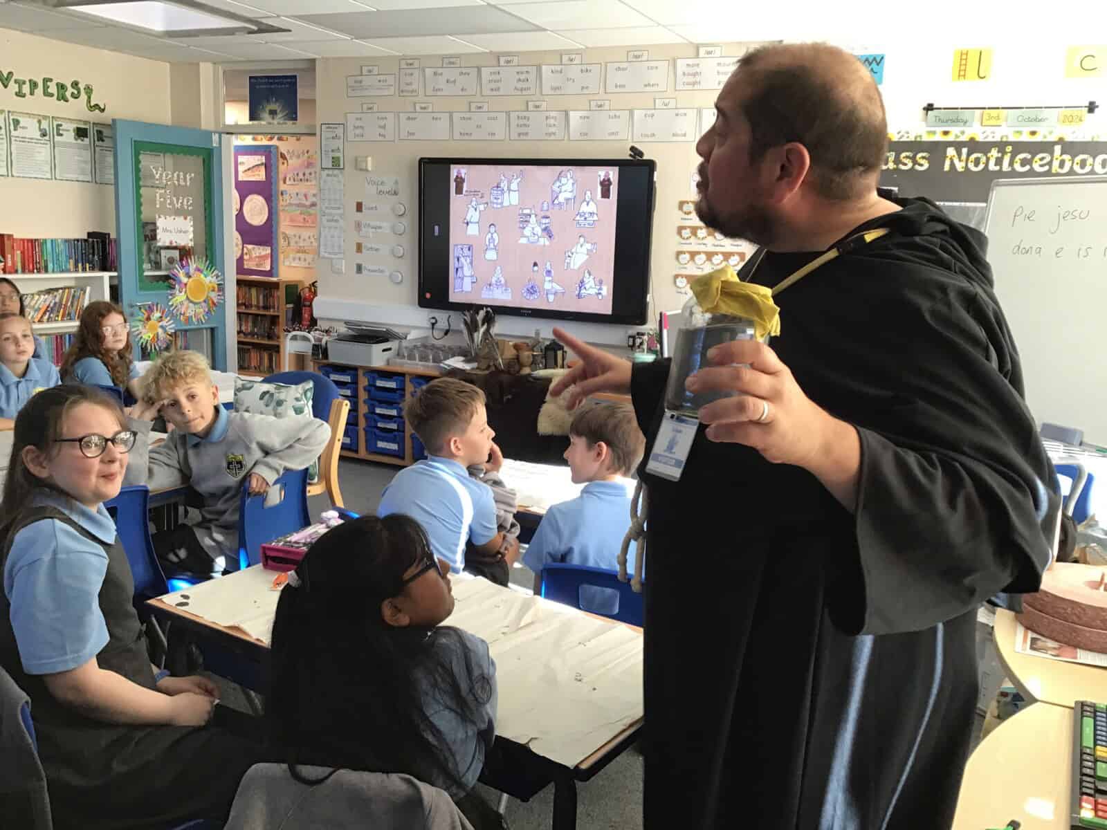 We explored the lives of Anglo Saxon monks which is part of our History topic this term. Richard really brought the past to life as he shared many aspects of Anglo Saxon times with us. Just as Richard intended, we learned lots and we had lots of fun!