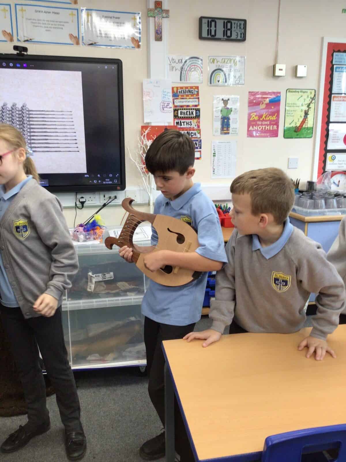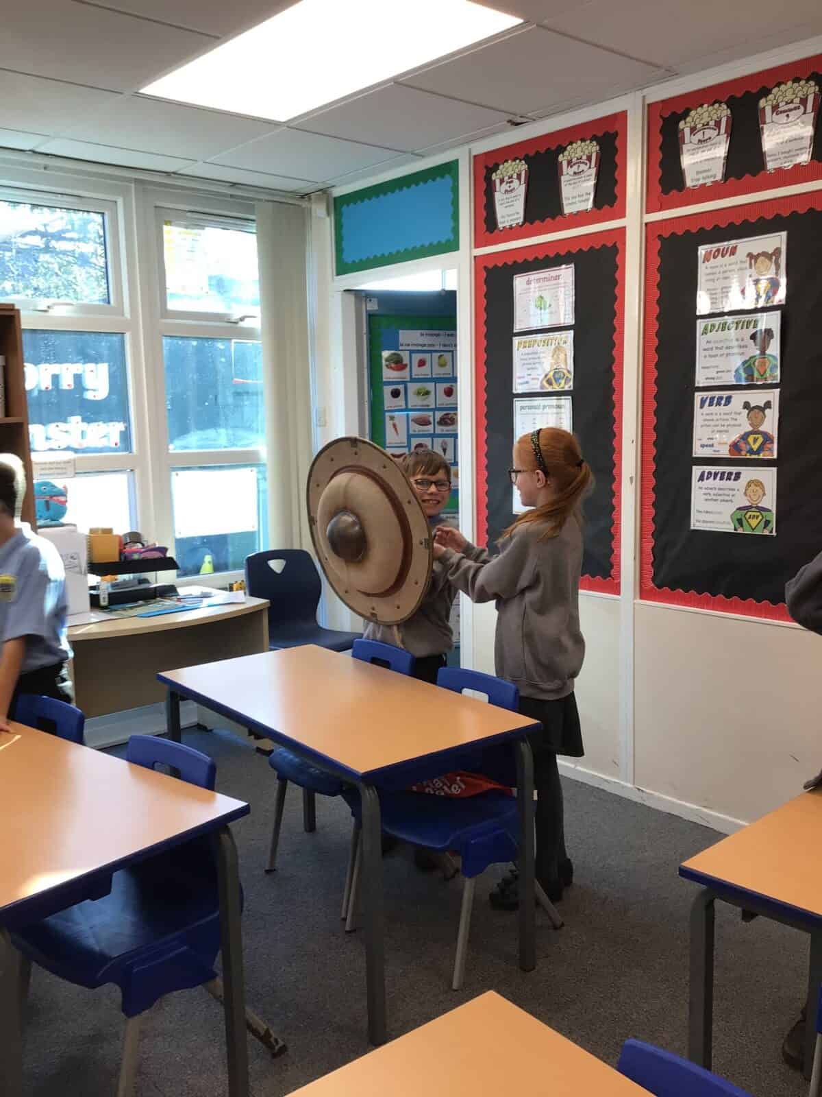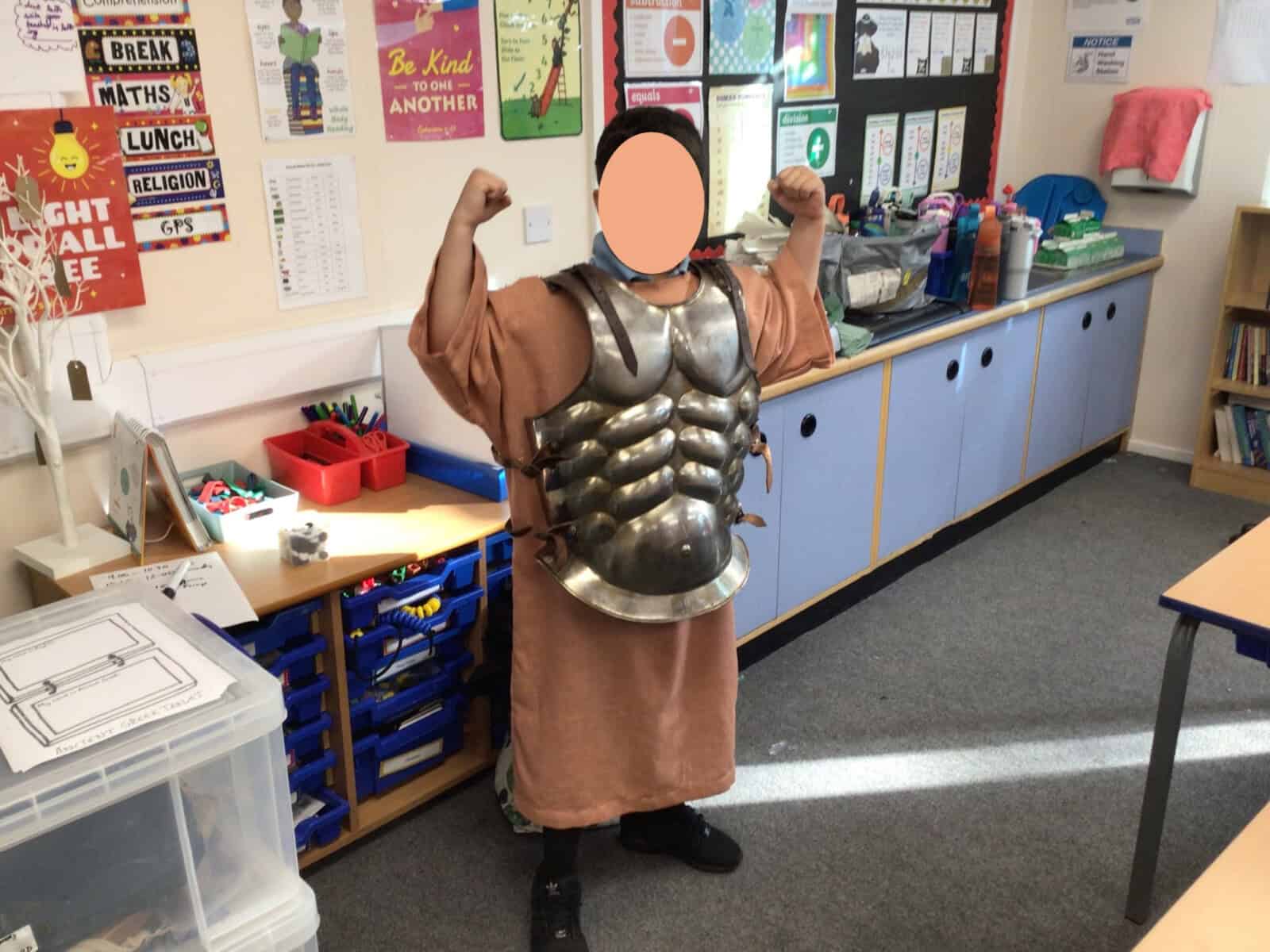 Richard also serenaded the class with his lyre and panpipes and the children dressed up in the regalia of a Hoplite soldier.