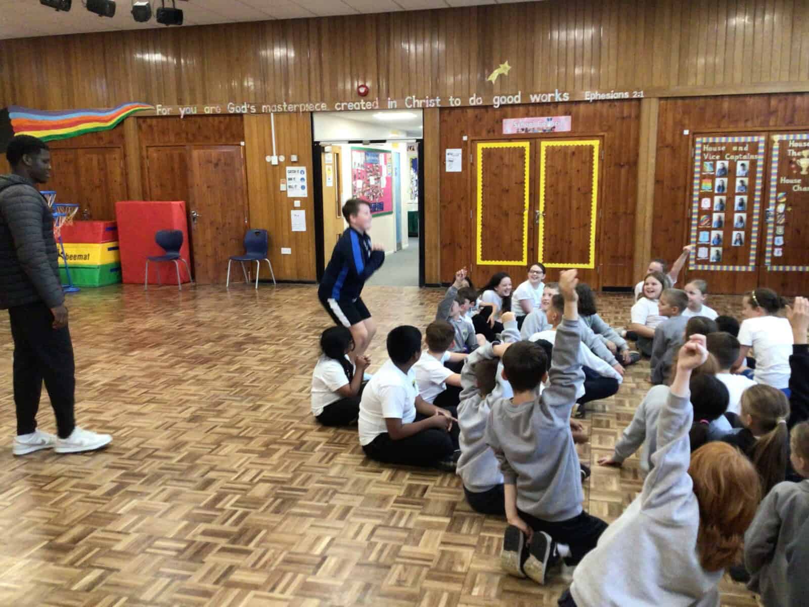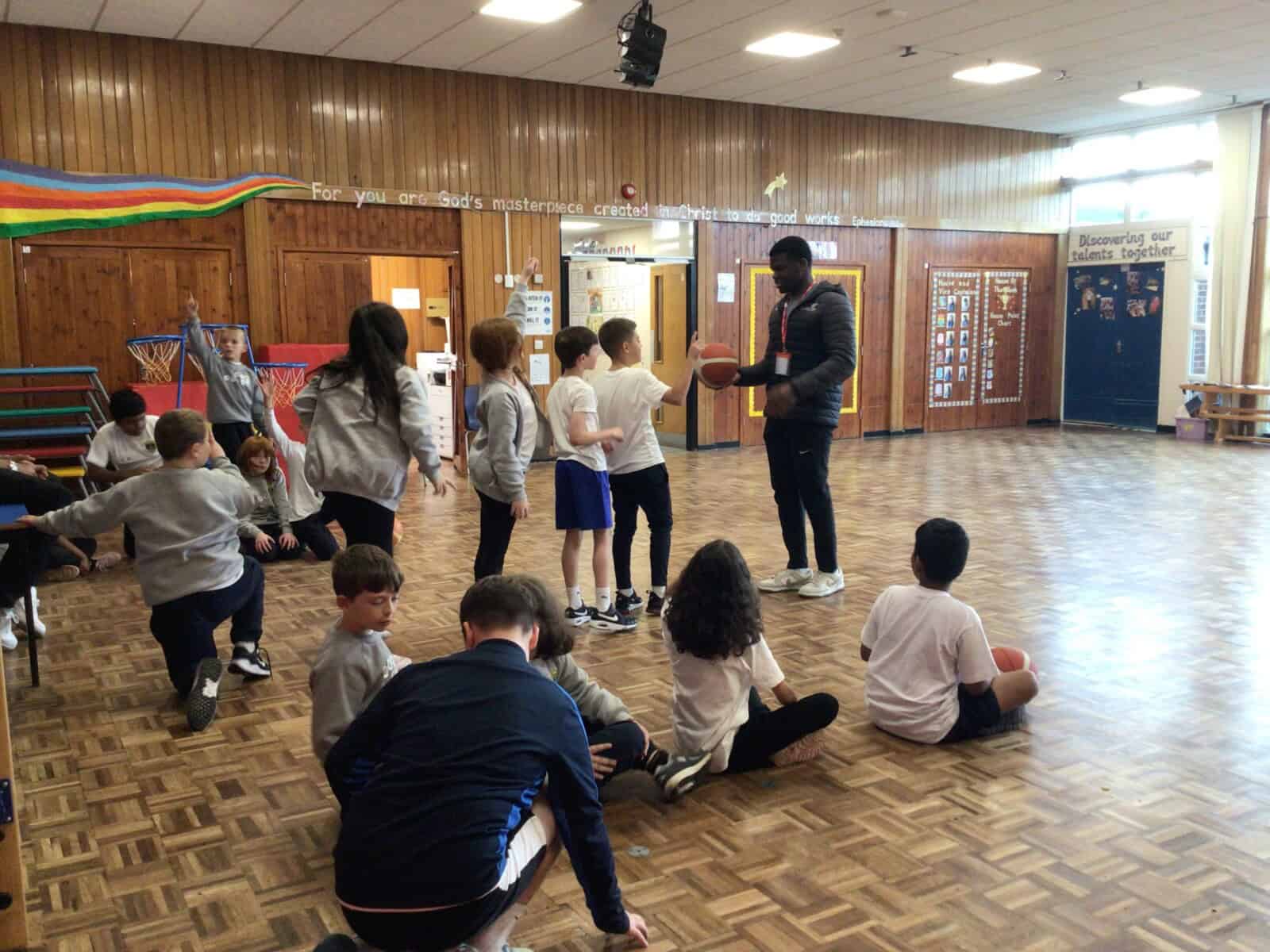 Last week, Year 5 had the fantastic opportunity to work with some of the players from Newcastle Eagles. They took part in the wonderful Hoops 4 Health roadshow. The afternoon concentrated on health messages such as mental and social wellbeing, how to stay fit and look after the heart and lungs, healthy eating including portion size and a balanced diet. Plus, there was the opportunity to play some basketball. Year 5  worked very hard and had a brilliant afternoon. Here are some photos of what we got up to: