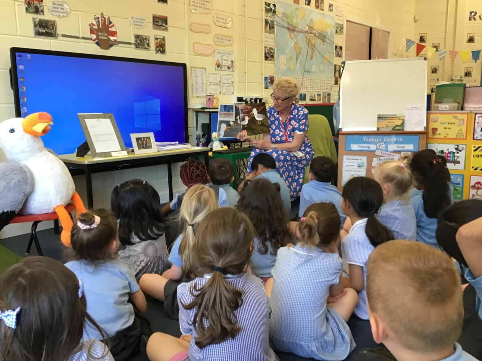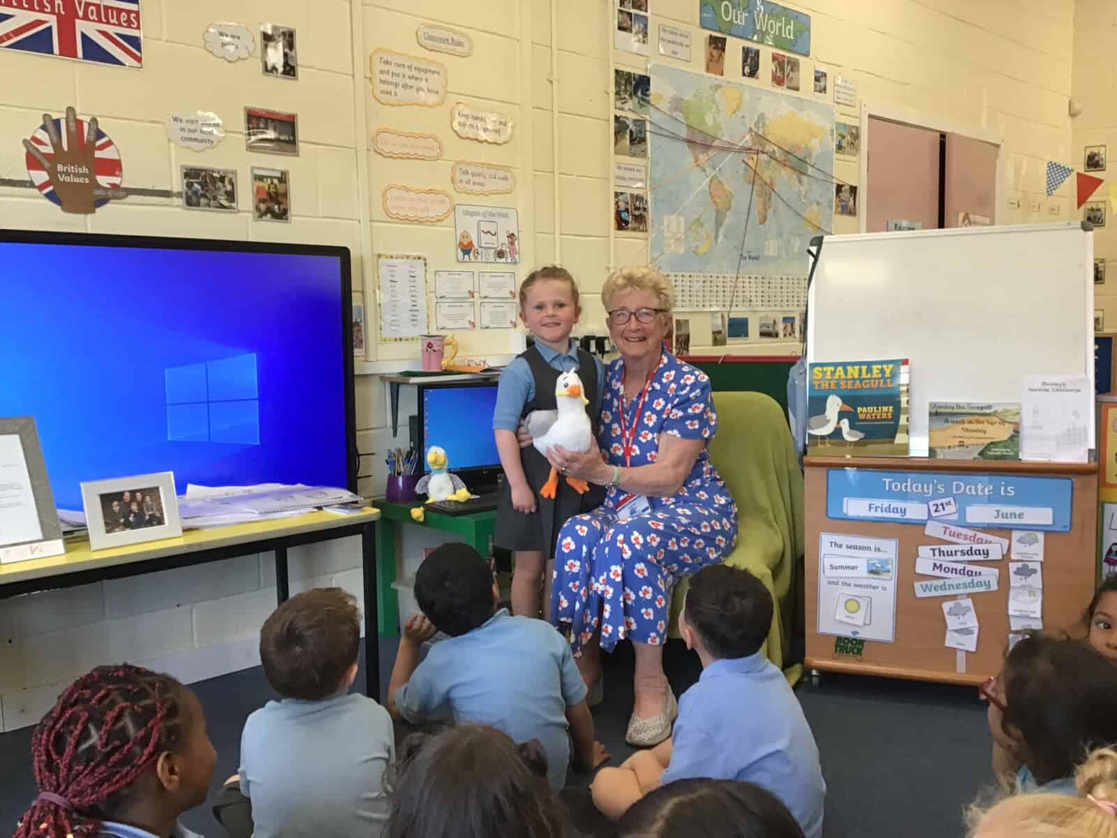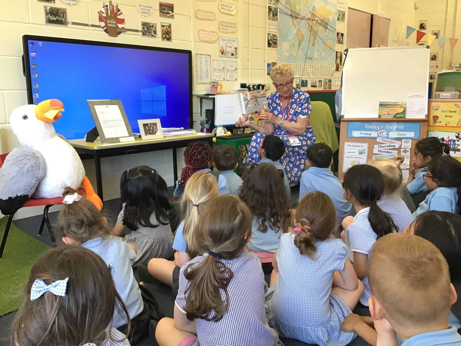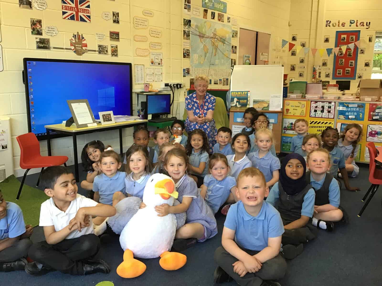 Today a very special lady paid a visit to Reception. Pauline Waters, author of ‘Stanley the Seagull’ came to talk to the children all about her job as an author. Pauline read the story ‘Stanley and the Great North Run’ to the children and talked about all of the stages involved in writing and publishing a book. The children asked some very interesting questions and have been inspired to write their own stories! Pauline left the children with one last important message, “everyone can be an author. You just need to start with an idea.”