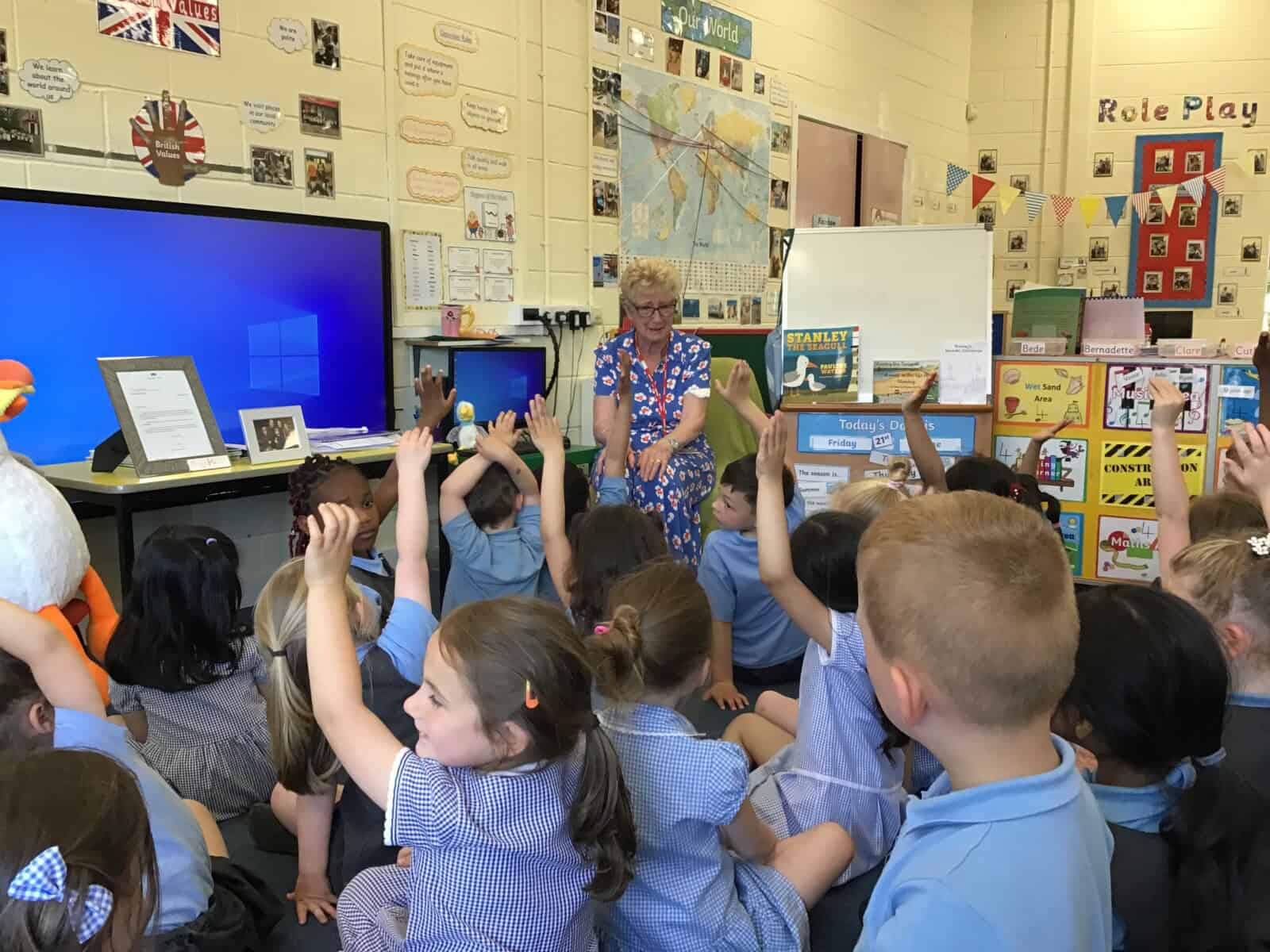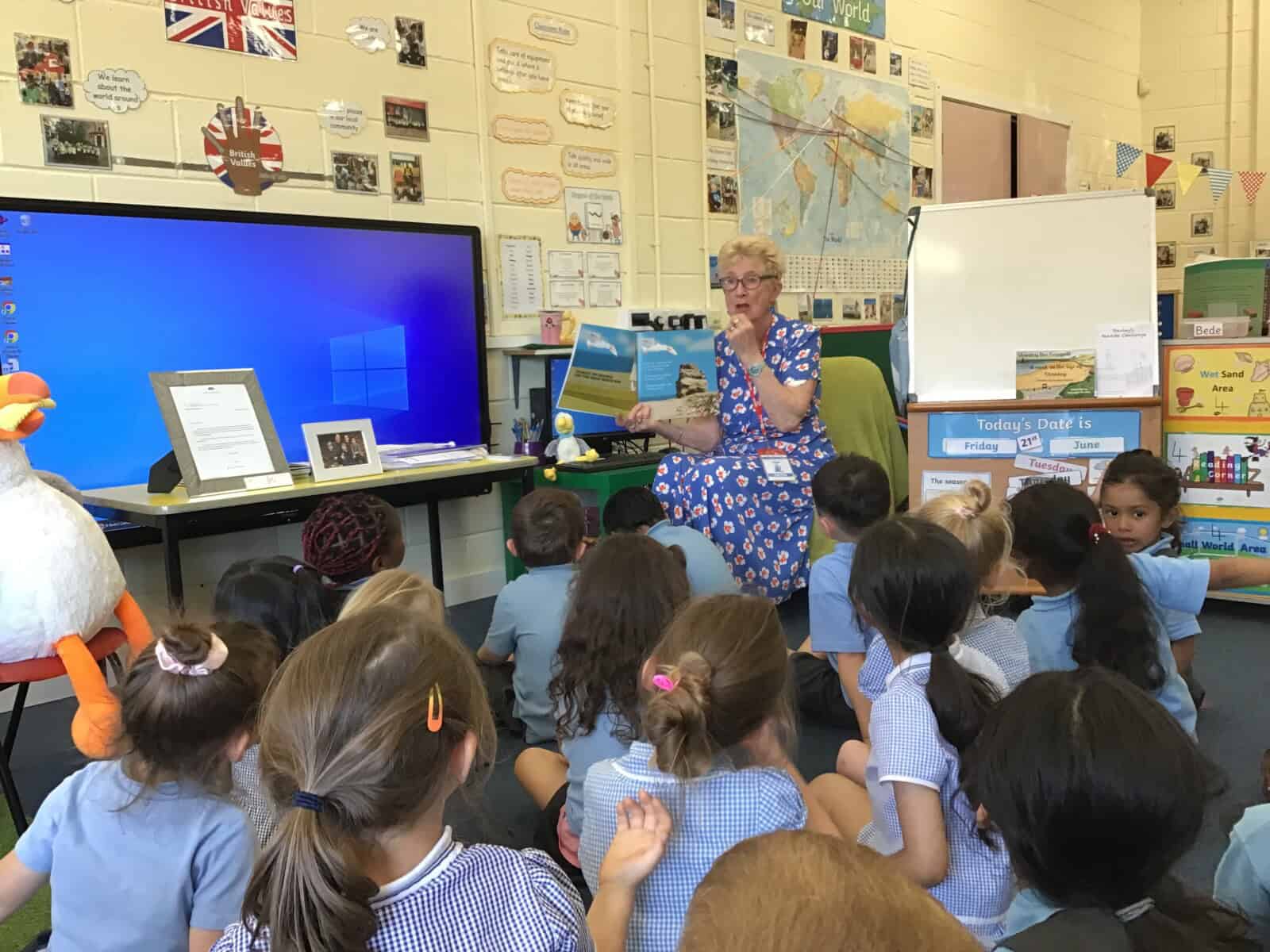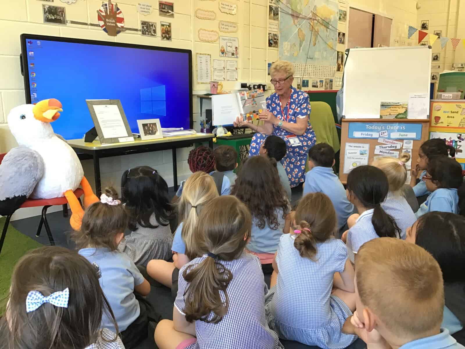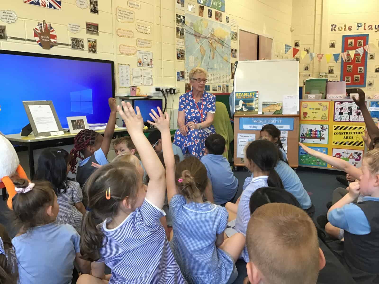 Today a very special lady paid a visit to Reception. Pauline Waters, author of ‘Stanley the Seagull’ came to talk to the children all about her job as an author. Pauline read the story ‘Stanley and the Great North Run’ to the children and talked about all of the stages involved in writing and publishing a book. The children asked some very interesting questions and have been inspired to write their own stories! Pauline left the children with one last important message, “everyone can be an author. You just need to start with an idea.”