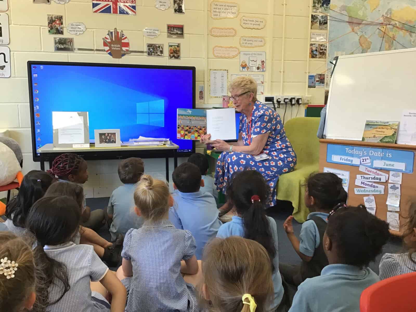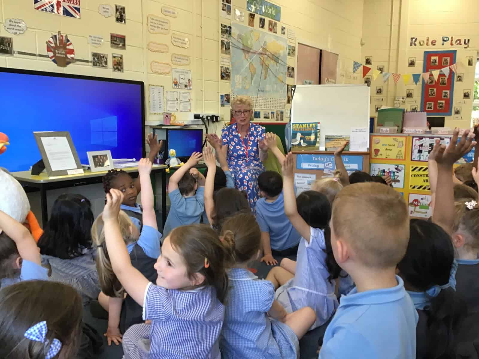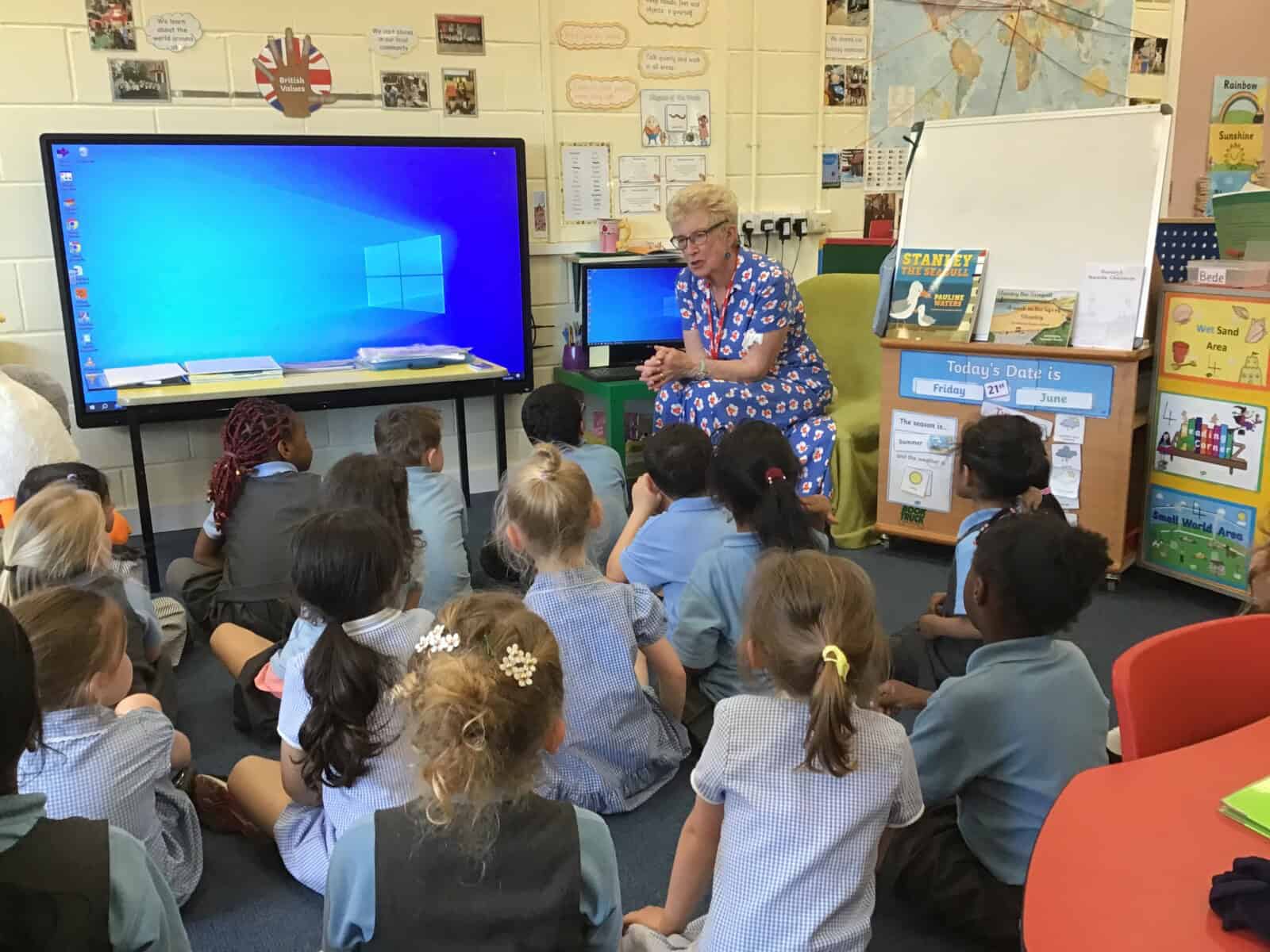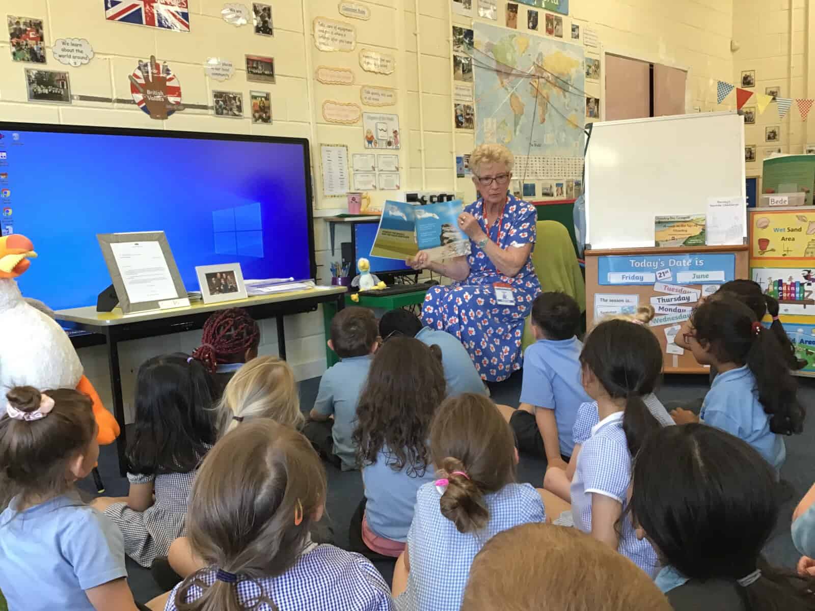 Today a very special lady paid a visit to Reception. Pauline Waters, author of ‘Stanley the Seagull’ came to talk to the children all about her job as an author. Pauline read the story ‘Stanley and the Great North Run’ to the children and talked about all of the stages involved in writing and publishing a book. The children asked some very interesting questions and have been inspired to write their own stories! Pauline left the children with one last important message, “everyone can be an author. You just need to start with an idea.”