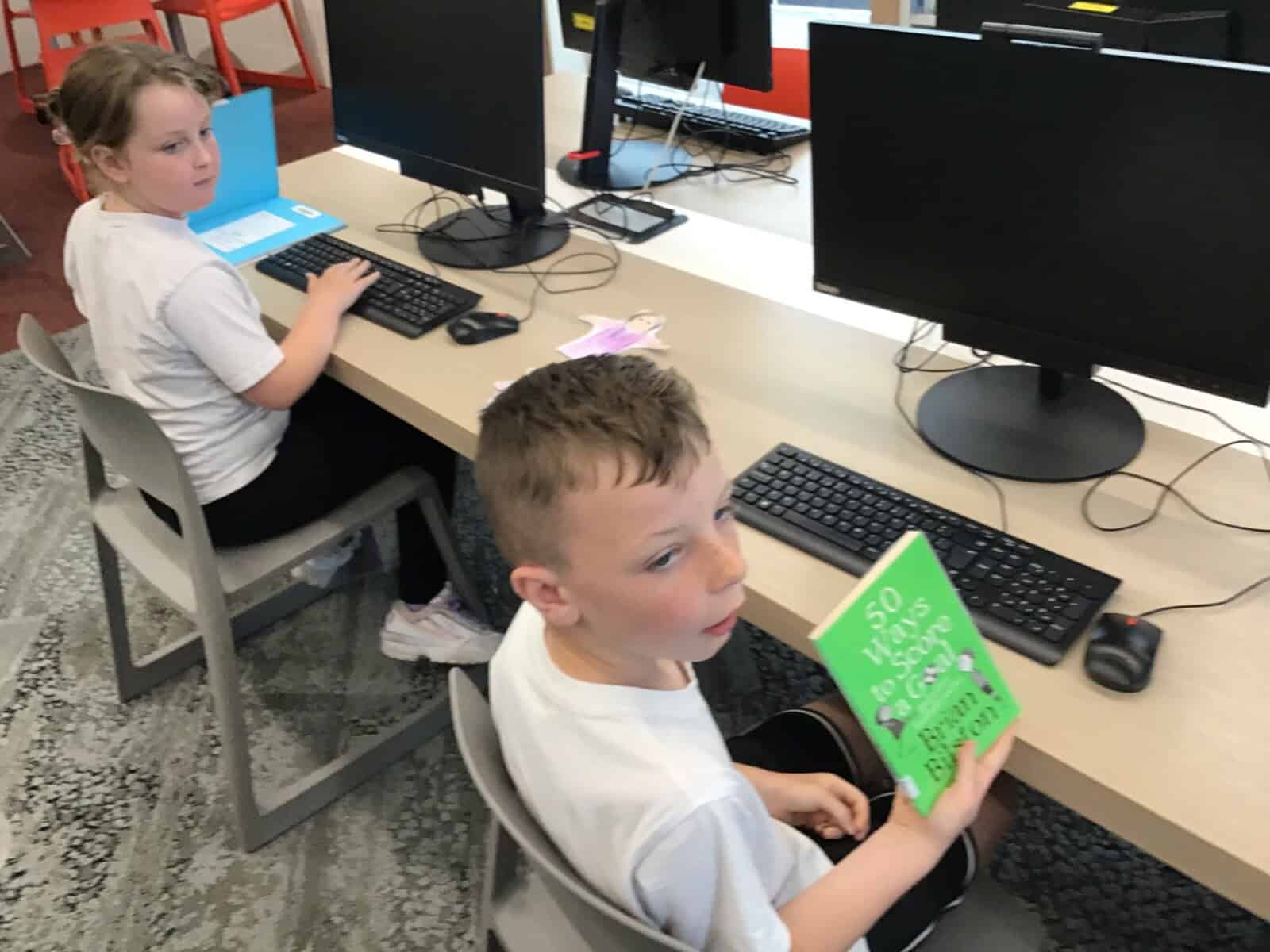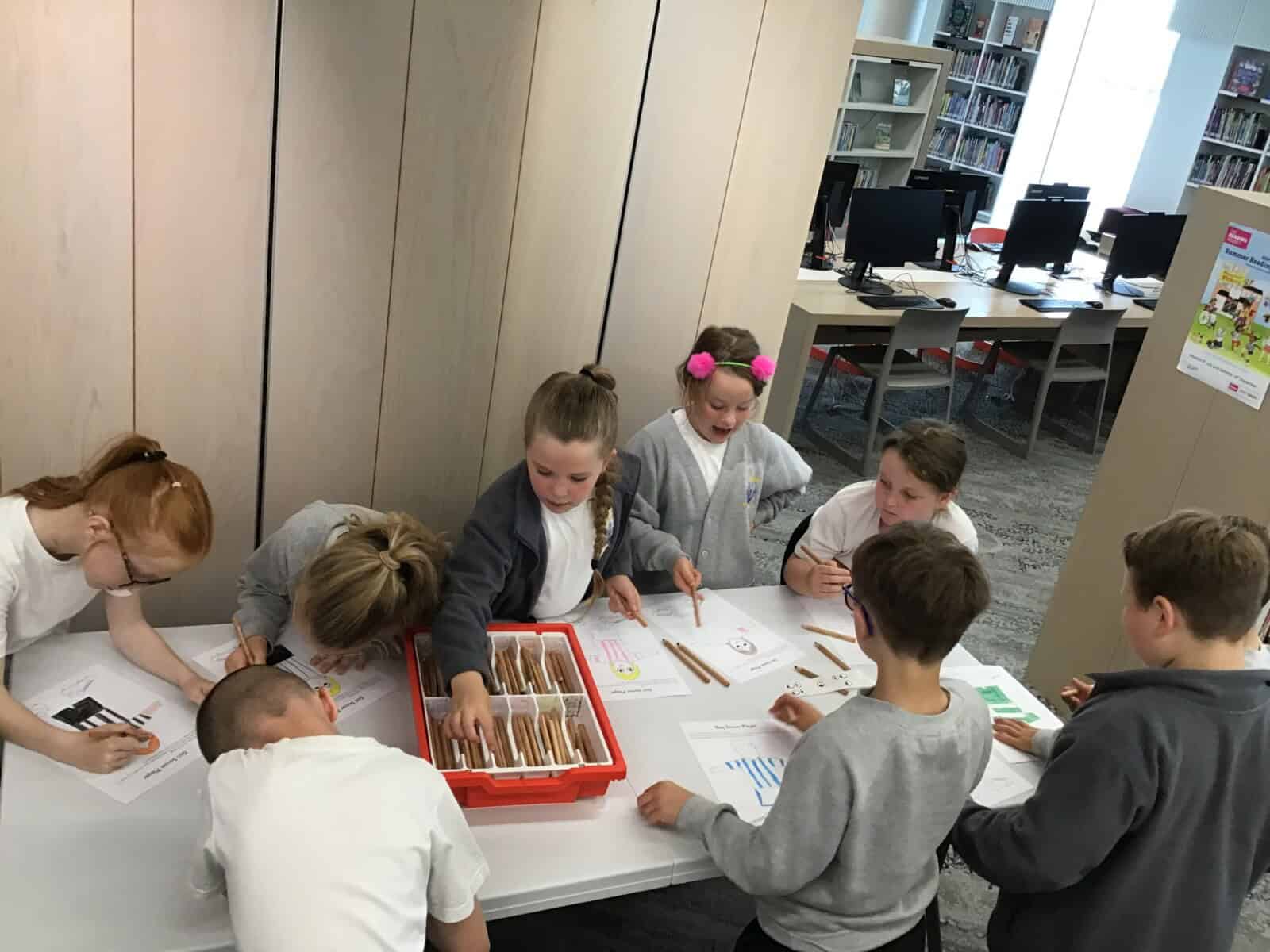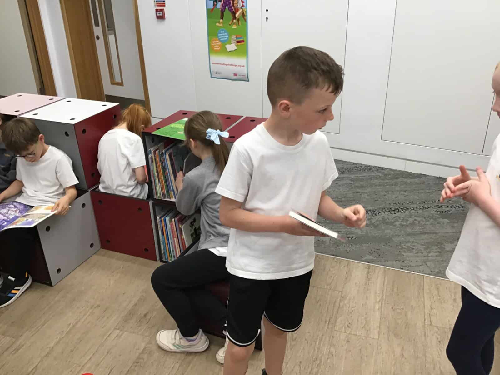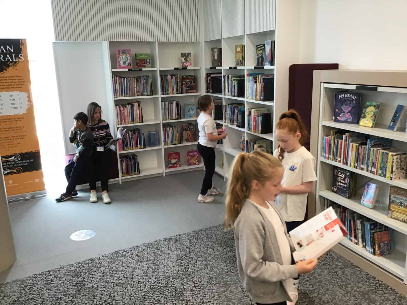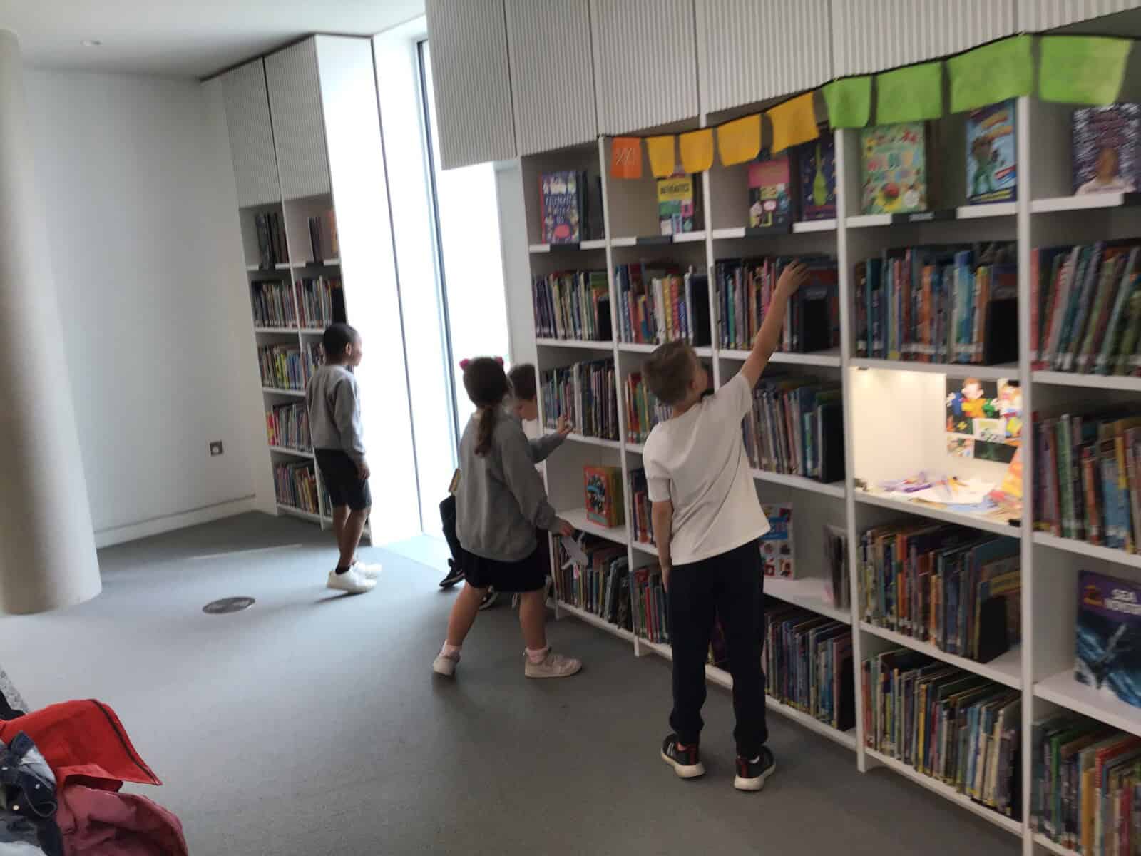 We set up a library ticket for Year 4 and the children were allowed to borrow one book each to read in school. Here they are choosing their books and checking them out.