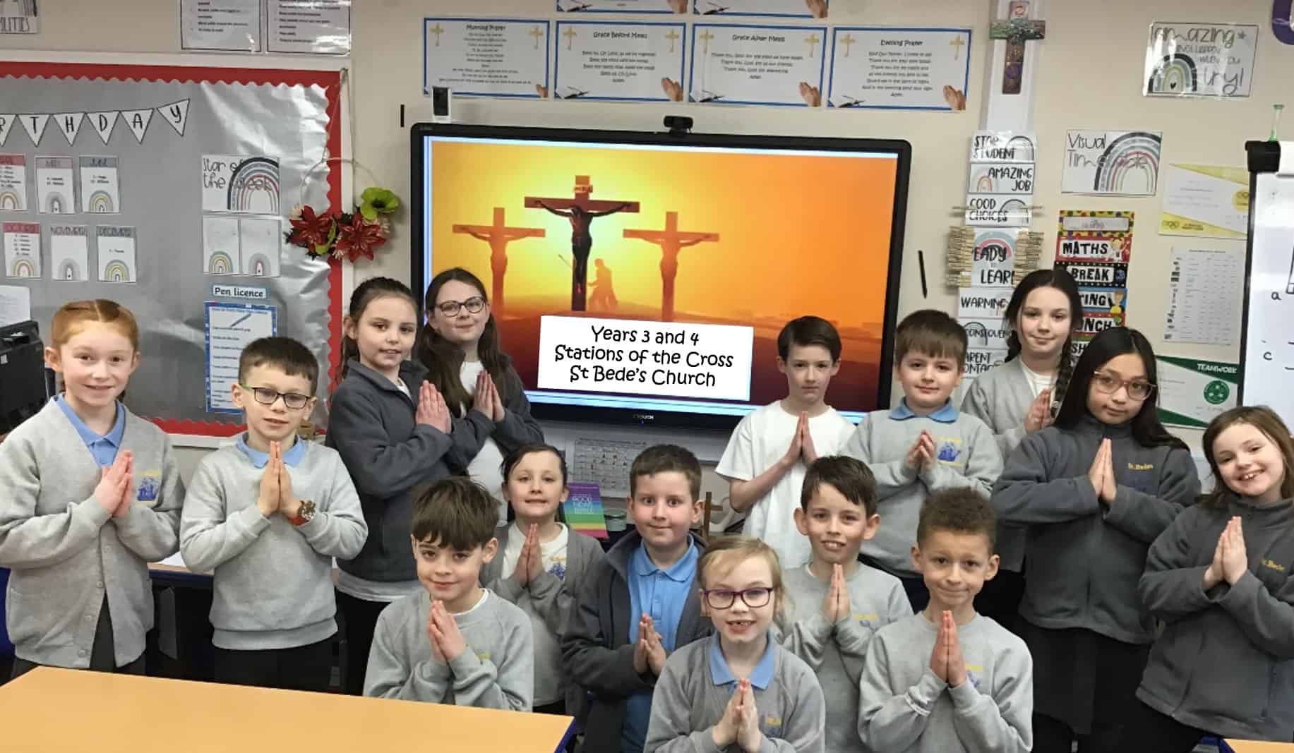 Years 3 and 4 led the Stations of the Cross at St Bede’s Church today together with their families and parishioners.