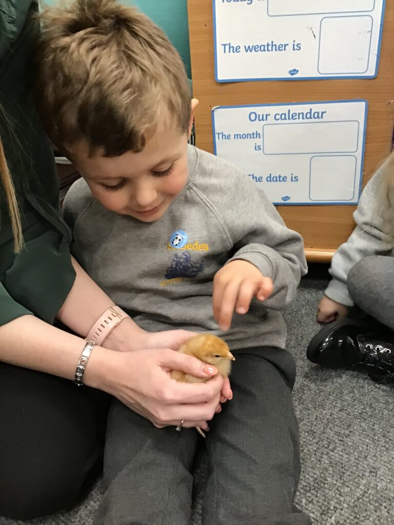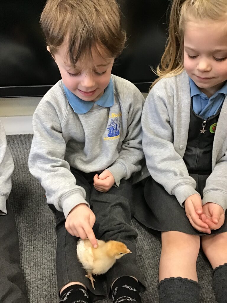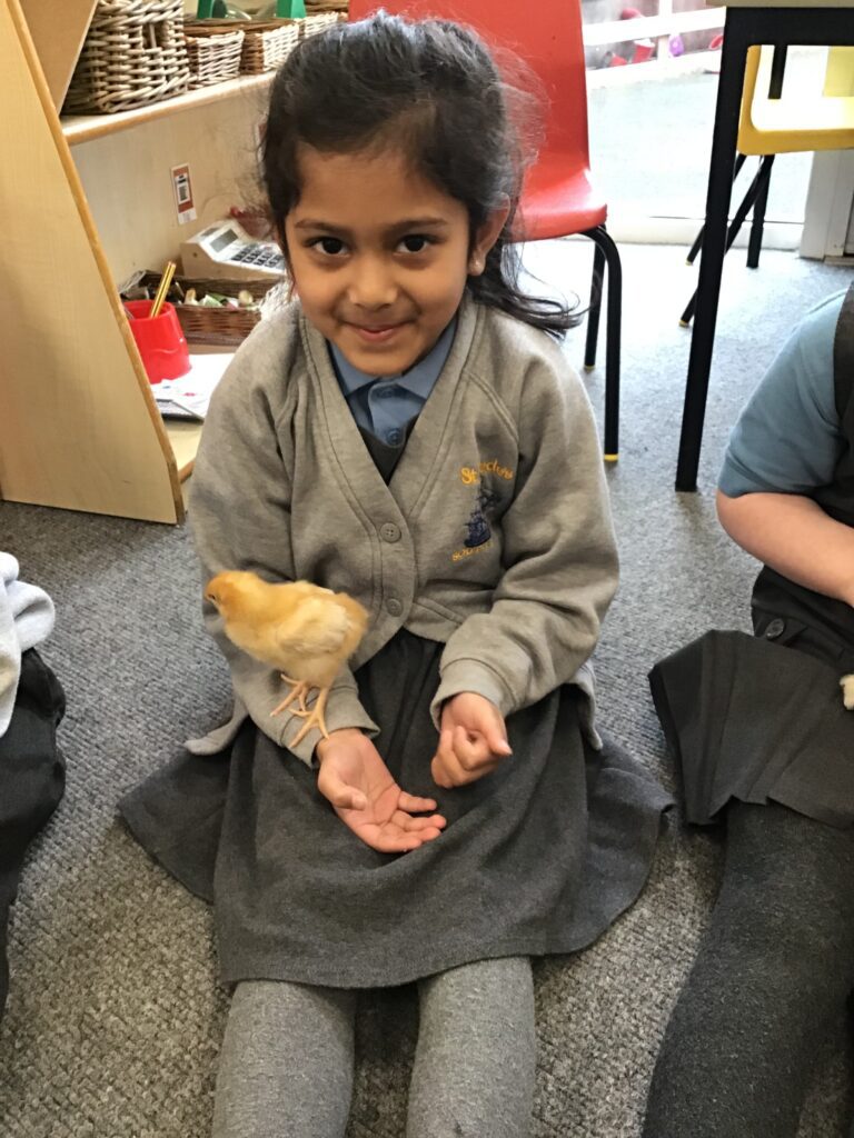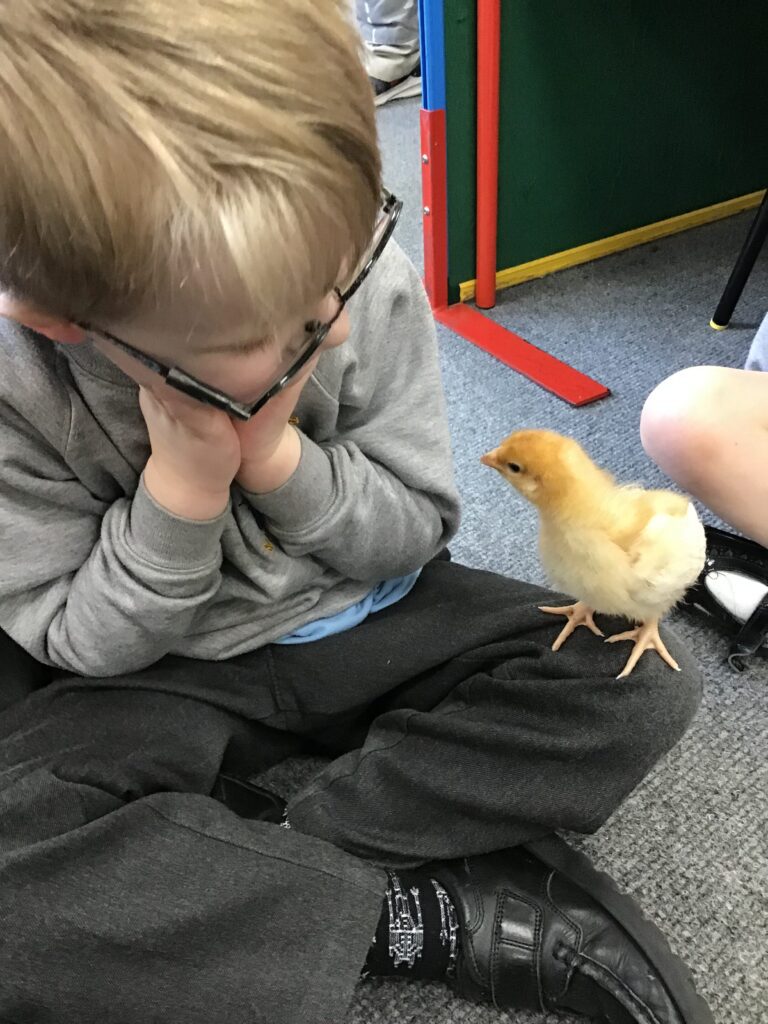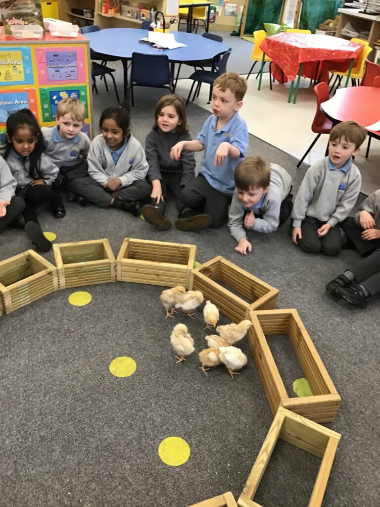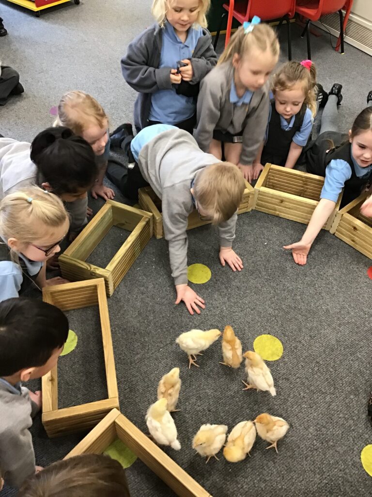 Reception had some very exciting visitors this morning! Mr and Mrs Foord very kindly brought their 8 chicks into school; the children absolutely loved holding and stroking them. The visit from the chicks was extra special for the children as we are learning all about Easter and signs of new life in Spring.