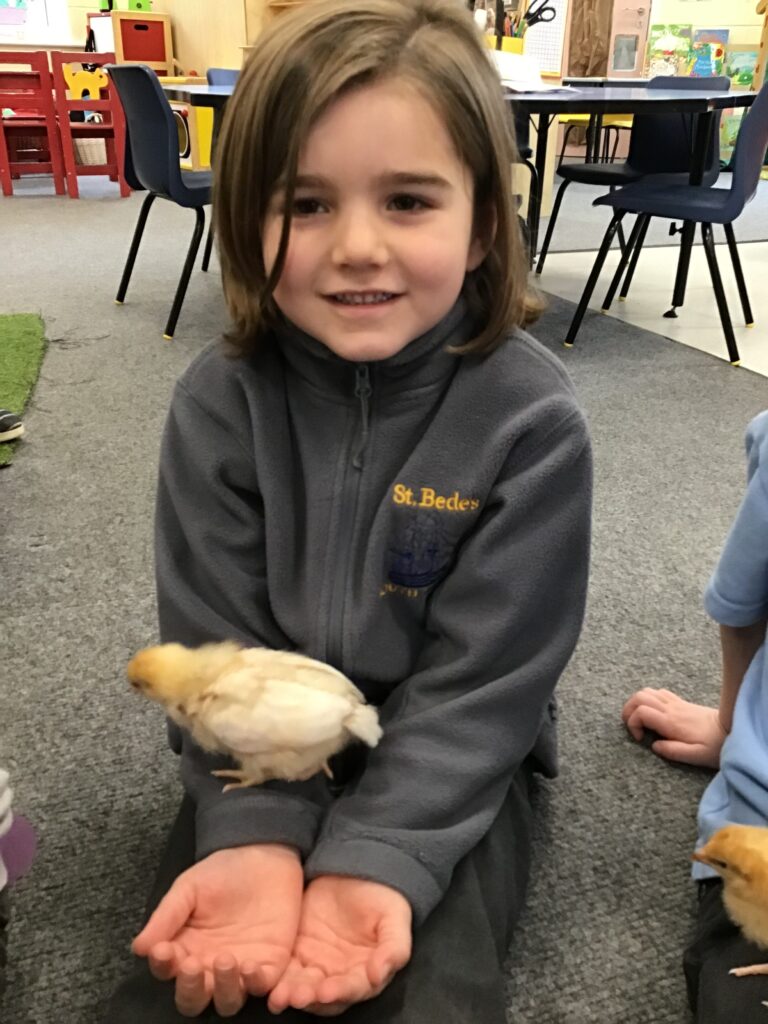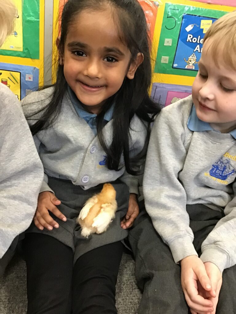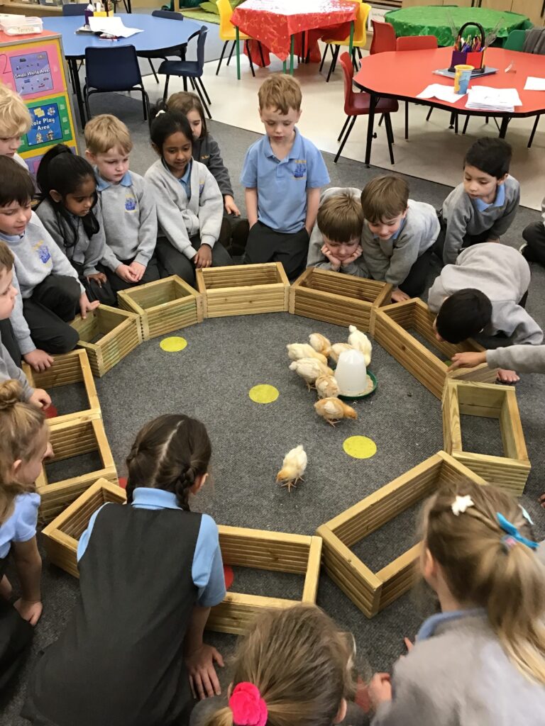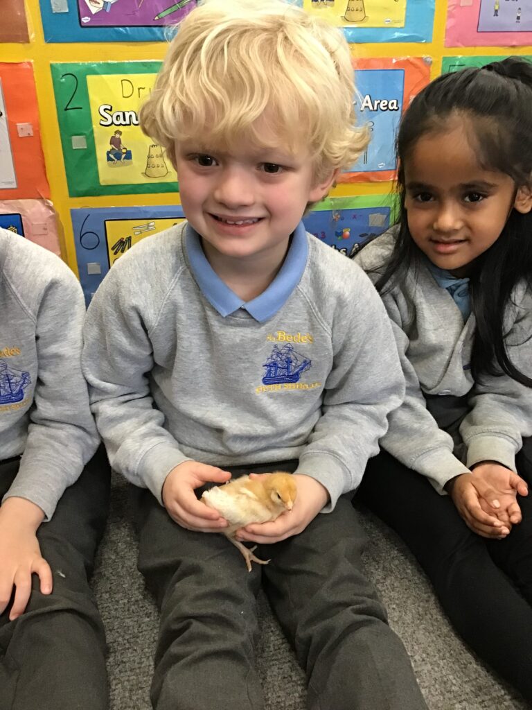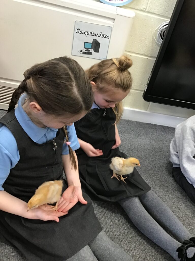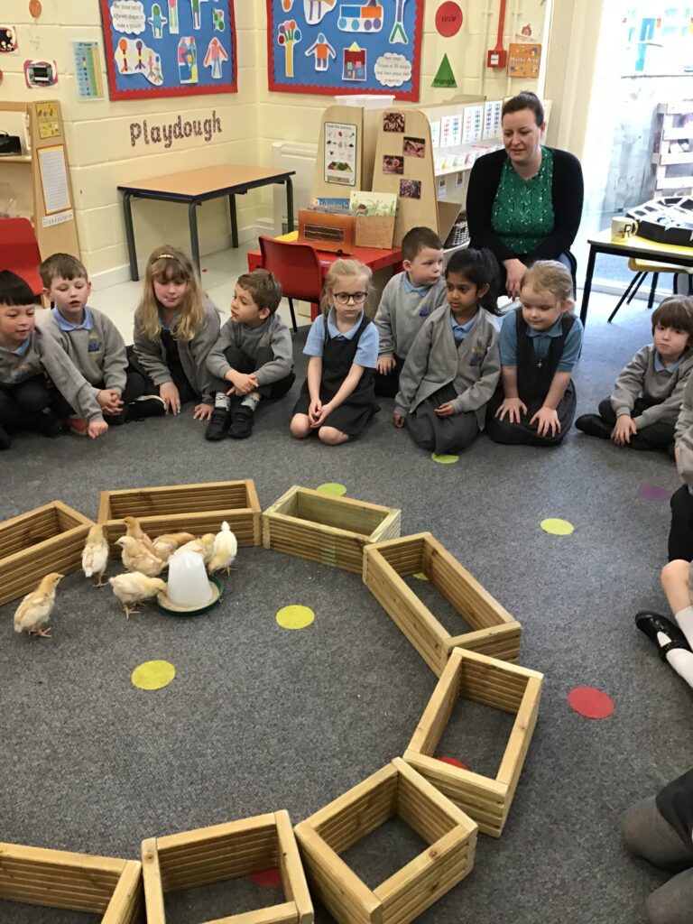 Reception had some very exciting visitors this morning! Mr and Mrs Foord very kindly brought their 8 chicks into school; the children absolutely loved holding and stroking them. The visit from the chicks was extra special for the children as we are learning all about Easter and signs of new life in Spring.