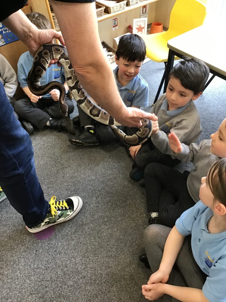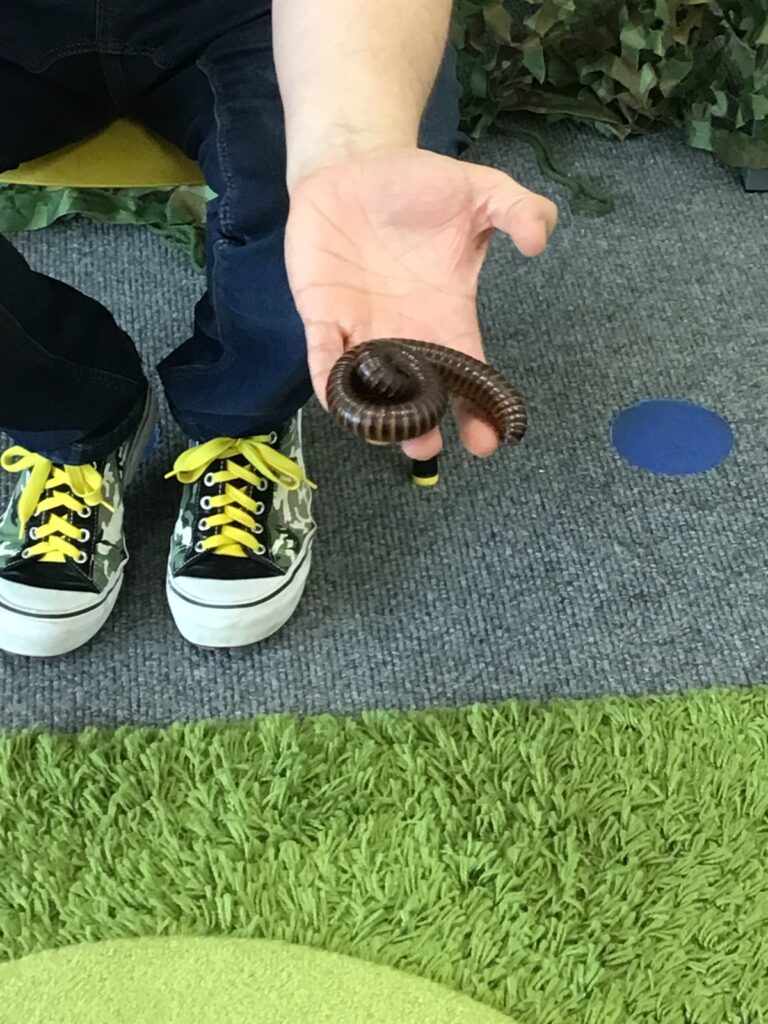 To start off our minibeast topic, reception have had some very exciting visitors… Guy from Bugs ‘n’ Stuff came into our class and brought with him some MEGA-BEASTS for the children to look at, hear facts about and even touch and hold! We had the chance to touch a snake, a skink, a tarantula, a stick insect, a cockroach and a millipede. We even got to look very closely at a scorpion and some desert beetles. The children (and adults) were so brave and thoroughly enjoyed the workshop!
