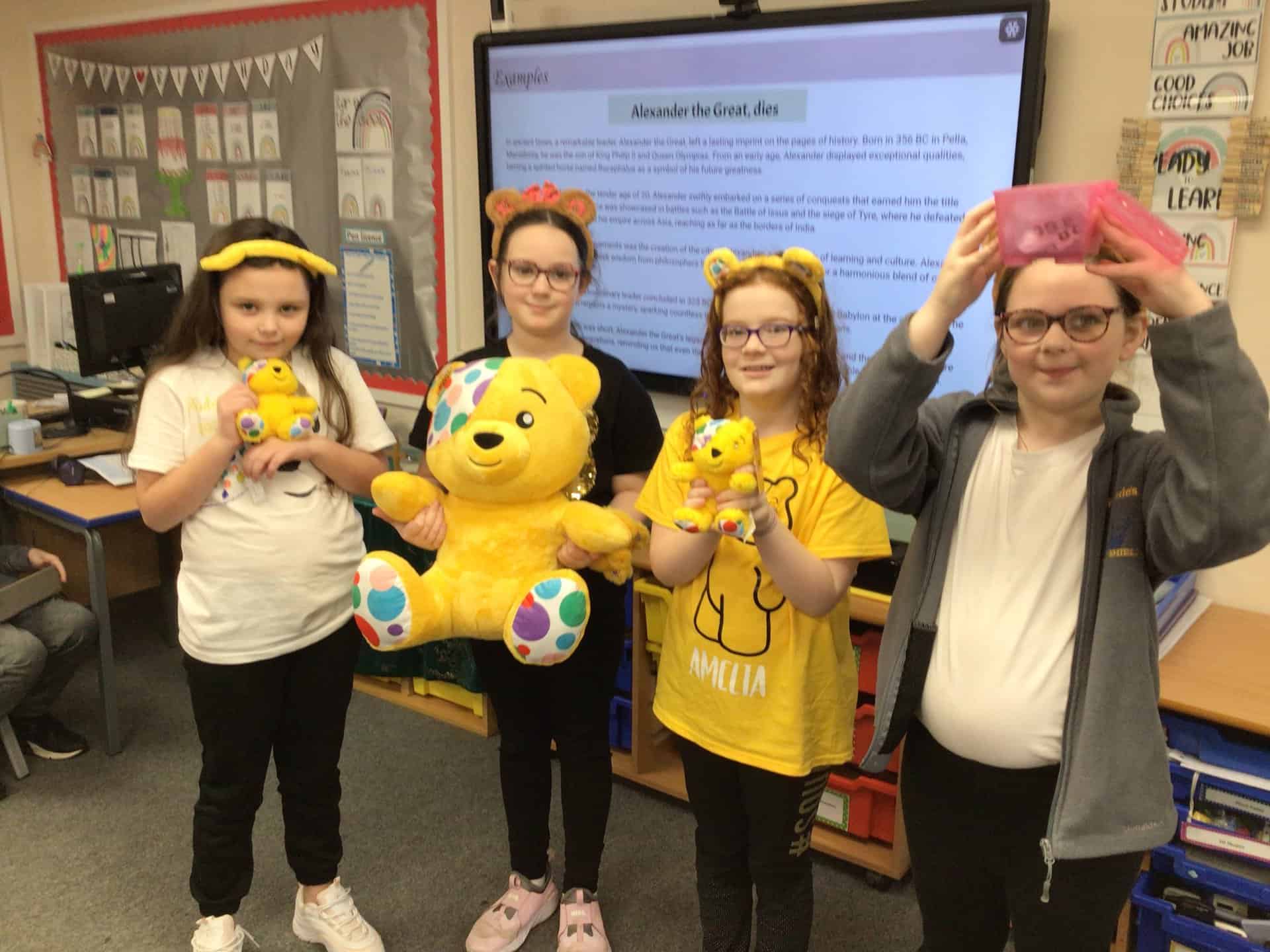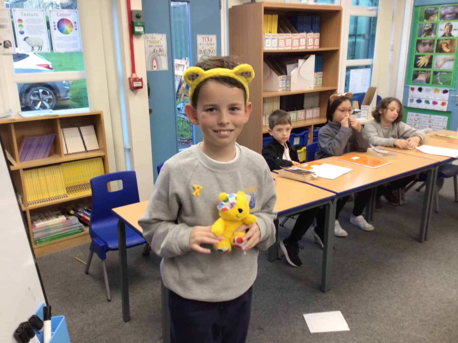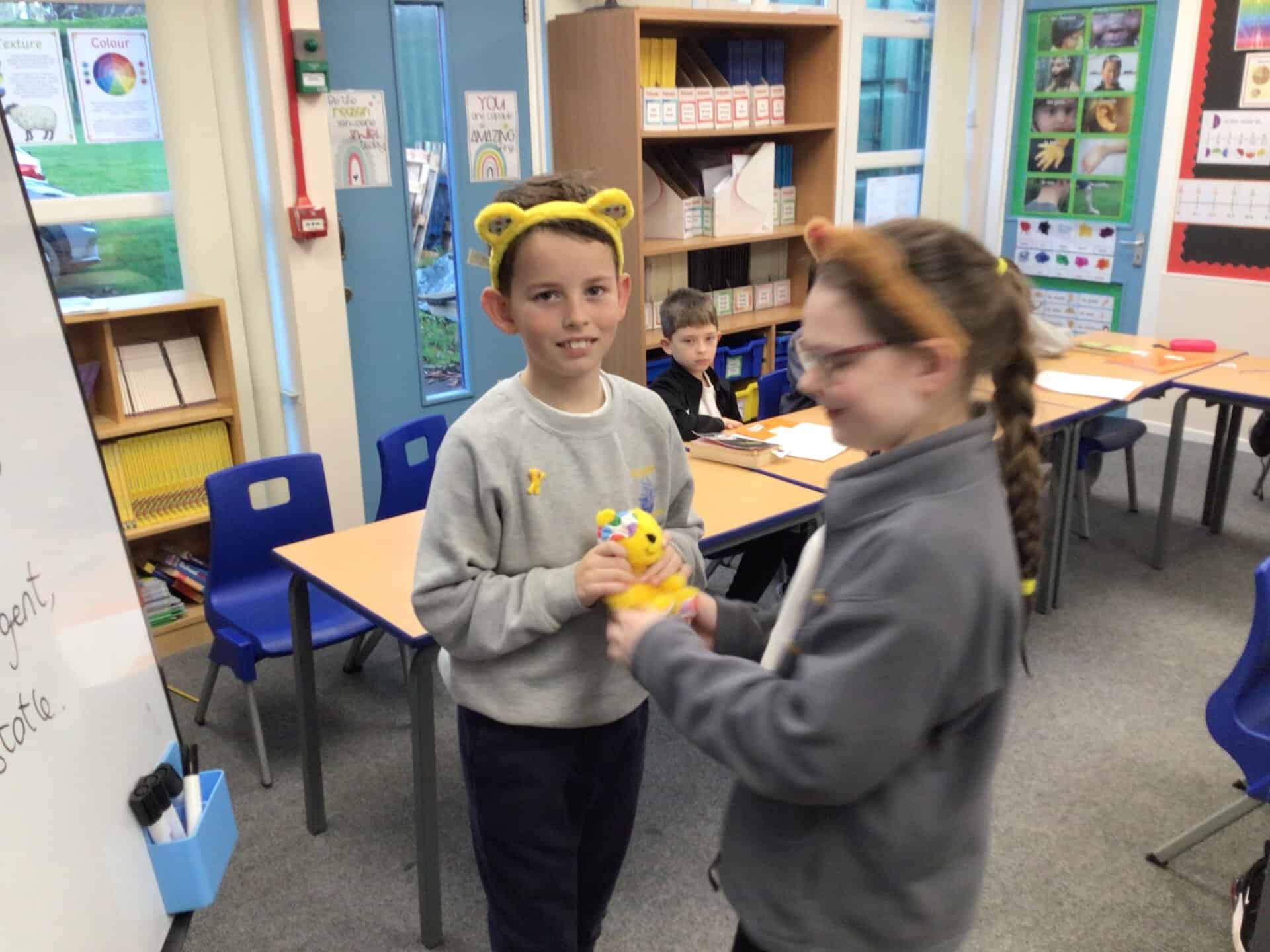 The Mini Vinnies were fantastic in their new roles with the Year 4 Mini Vinnies leading the Pudsey Bear raffle.  Here they are with the lucky winners!
