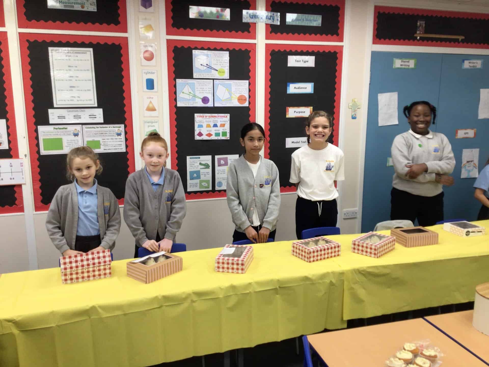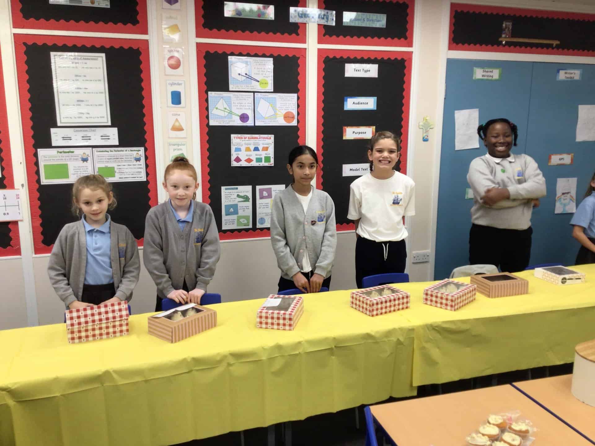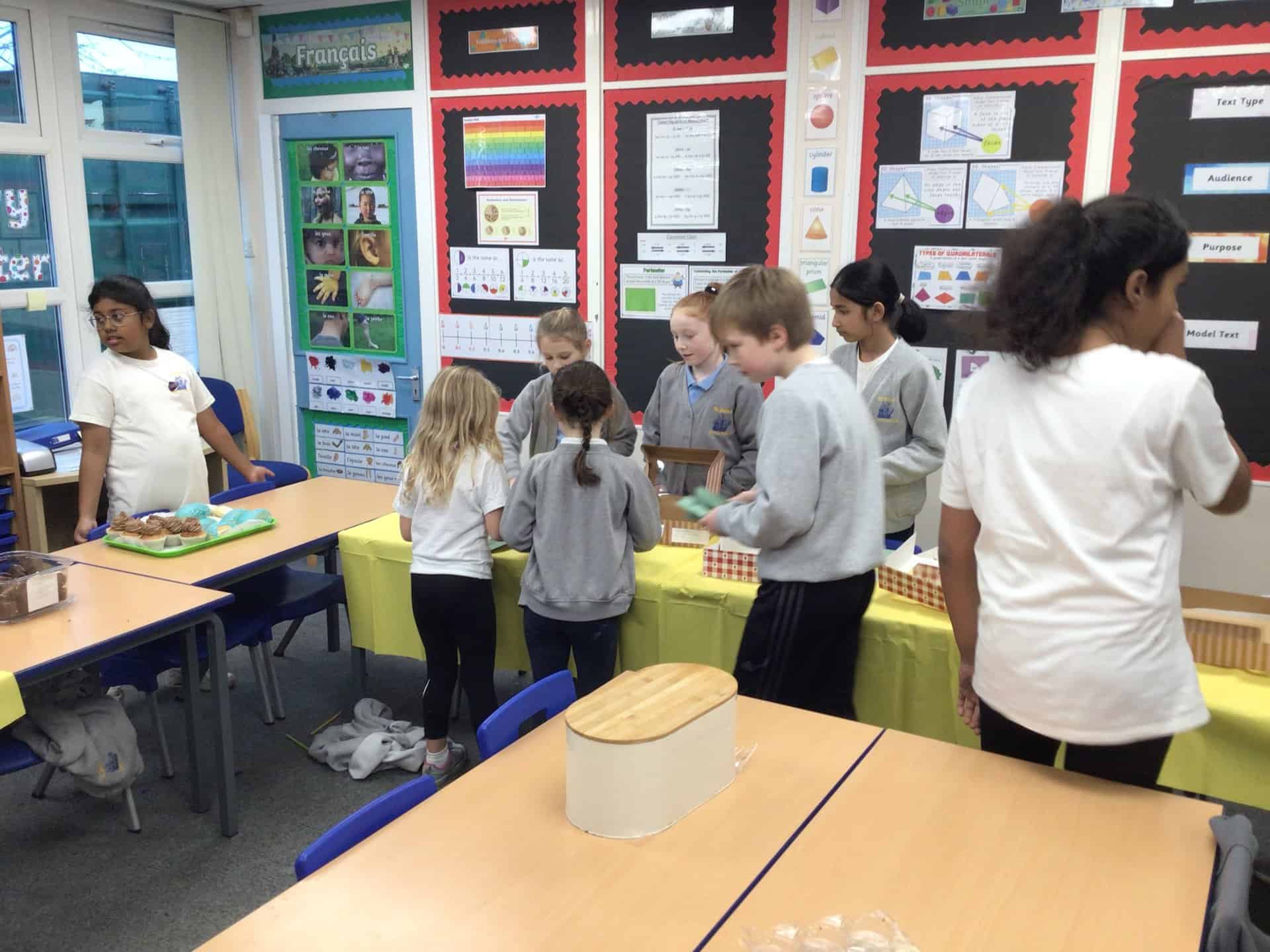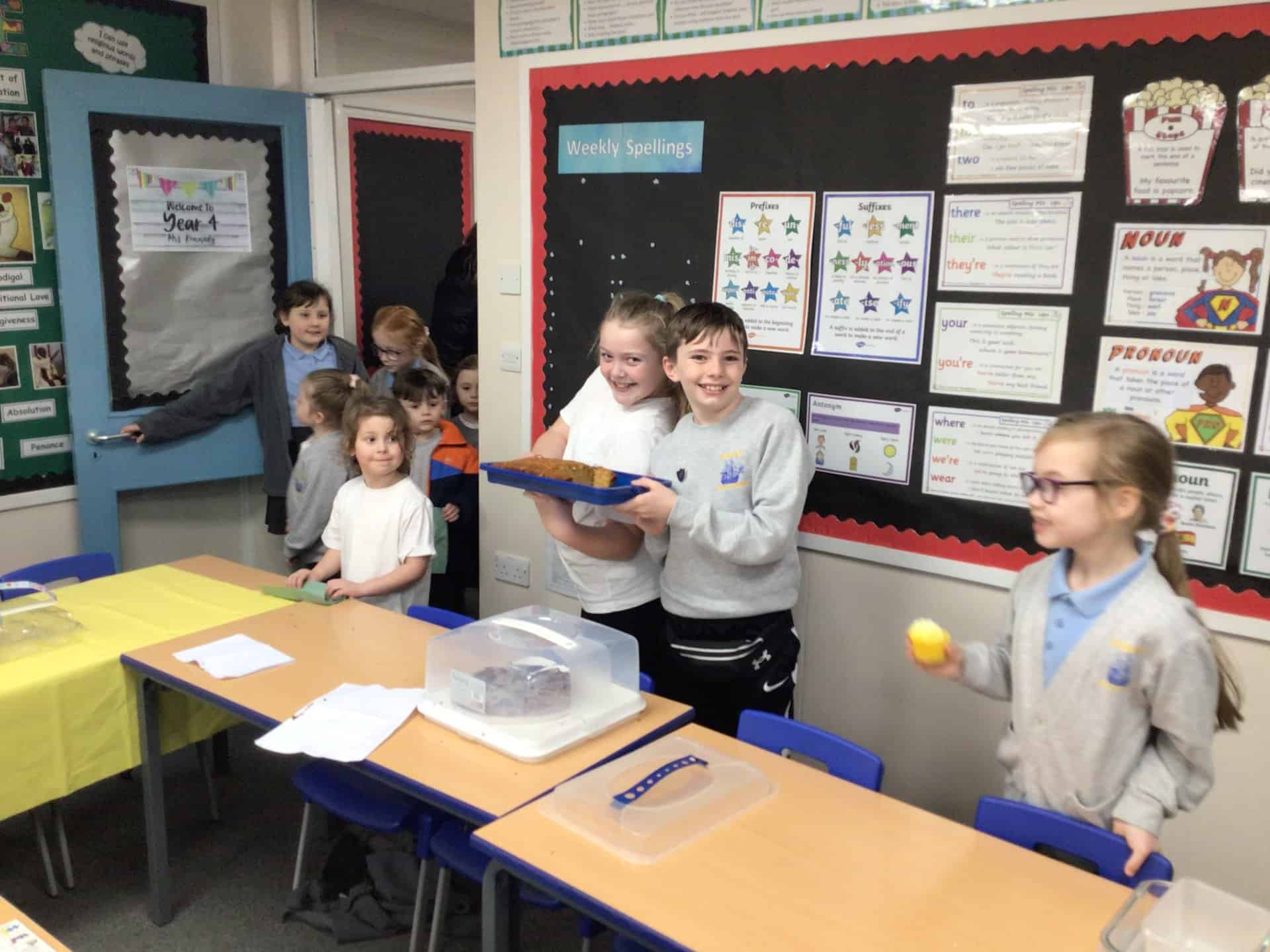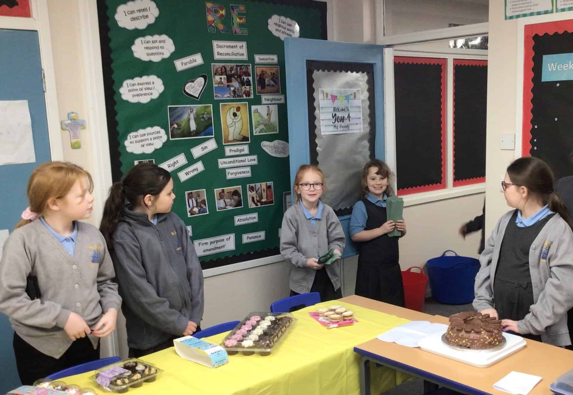 Today, our first group of Mini Vinnies ran our Children in Need Cake Sale.  The yummy treats were provided by our Year 6 children and their families.  Thank you so much, they were delicious!