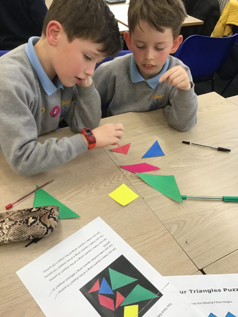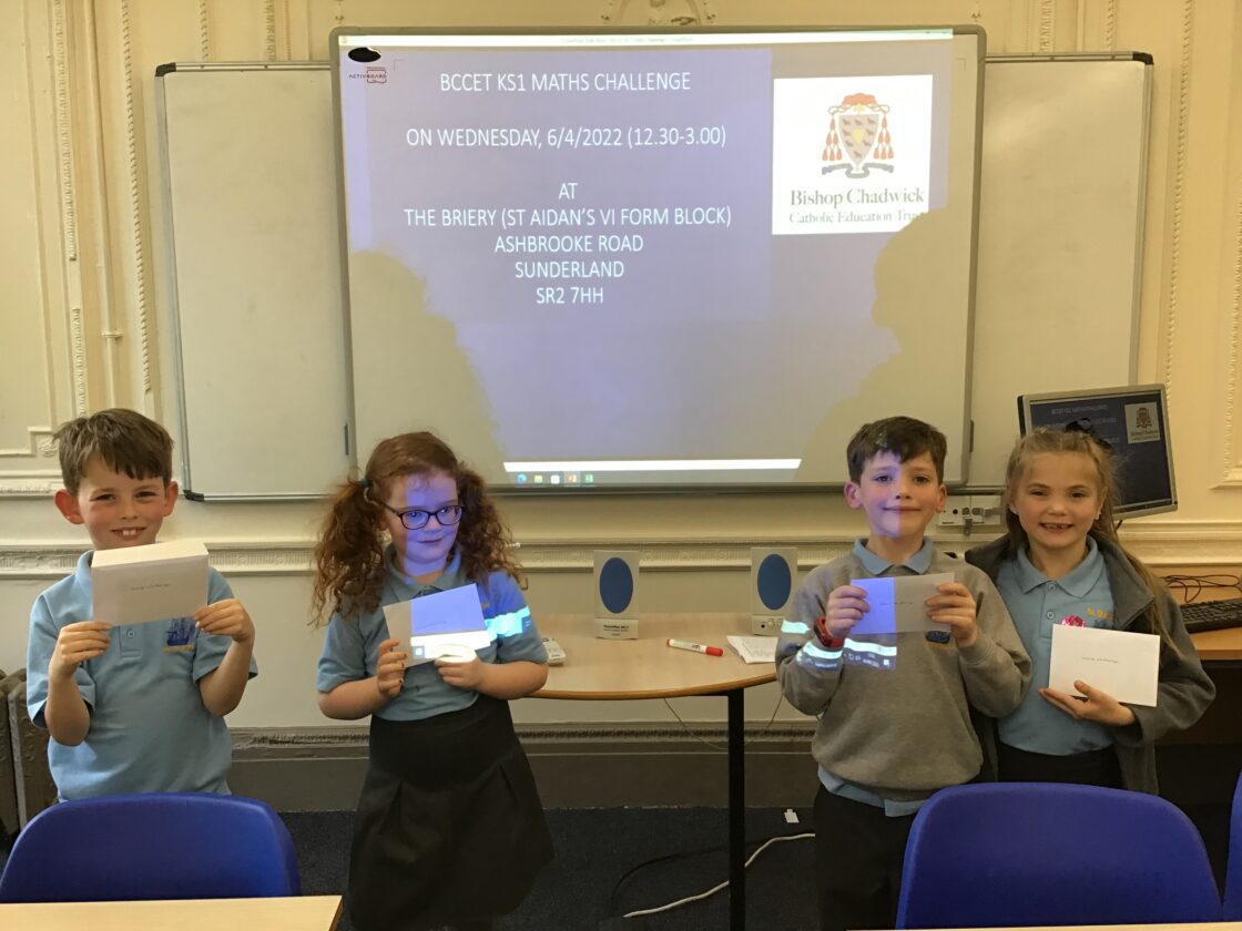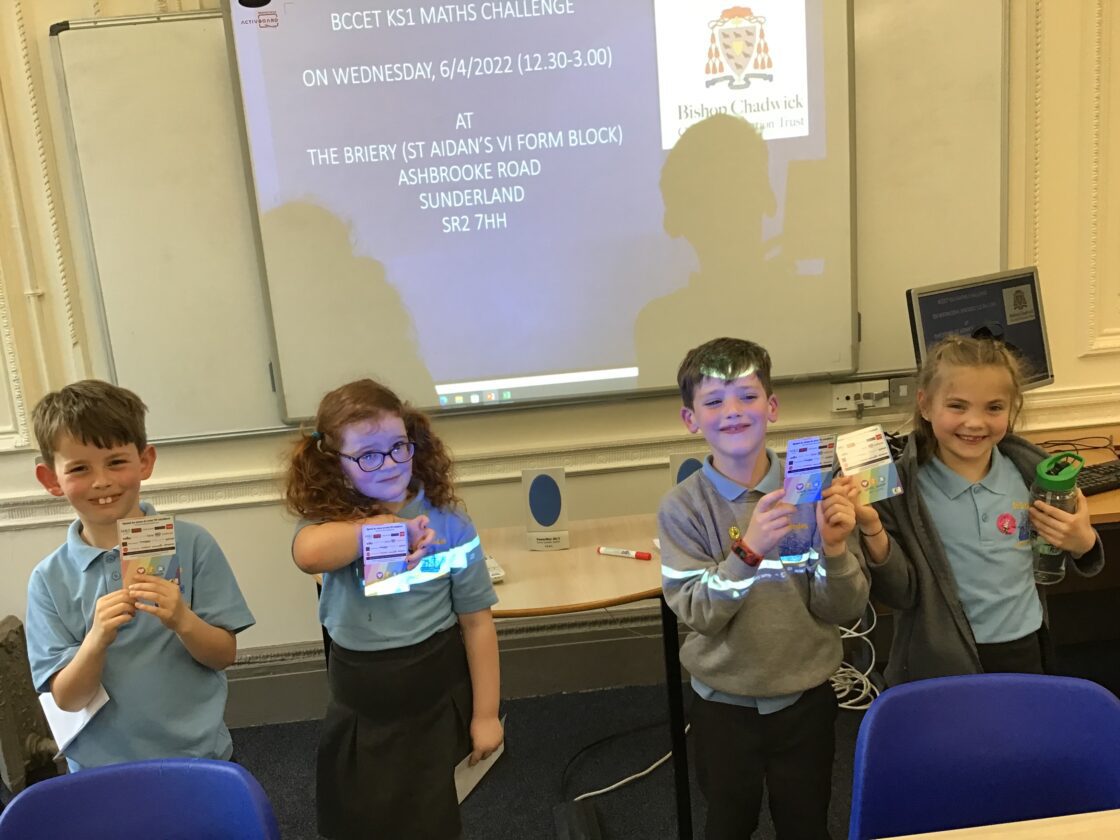 Four children from Year 2 were selected to take part in the BCCET KS1 Maths Challenge at The Briery in Sunderland. They spent the afternoon working their socks off with arithmetic, problem solving and reasoning activities. They played games such as tangrams, spot the shapes, target number and finished with a game of play your cards right. The four chosen children won the group challenge and are very excited to spend their gift cards.