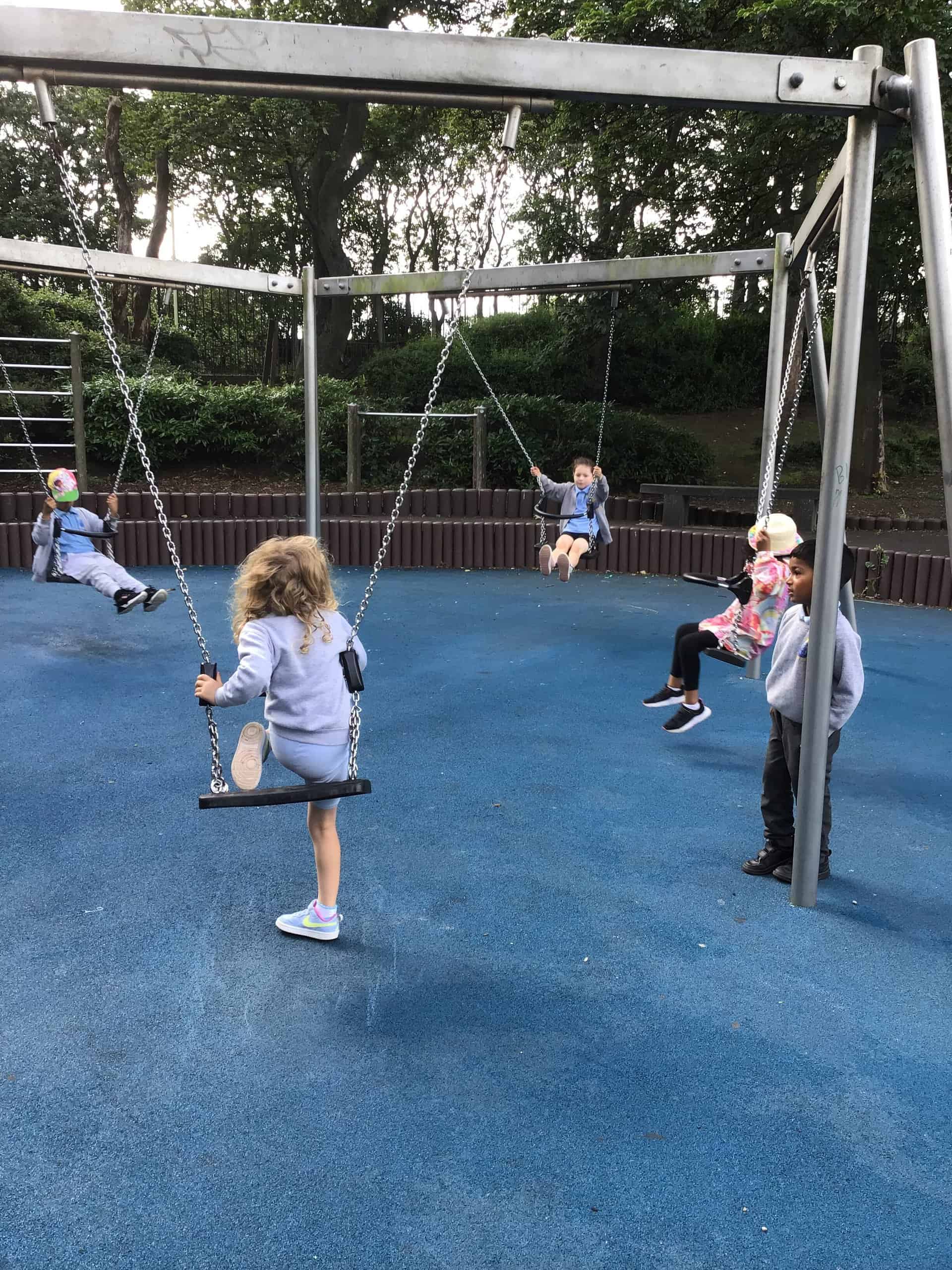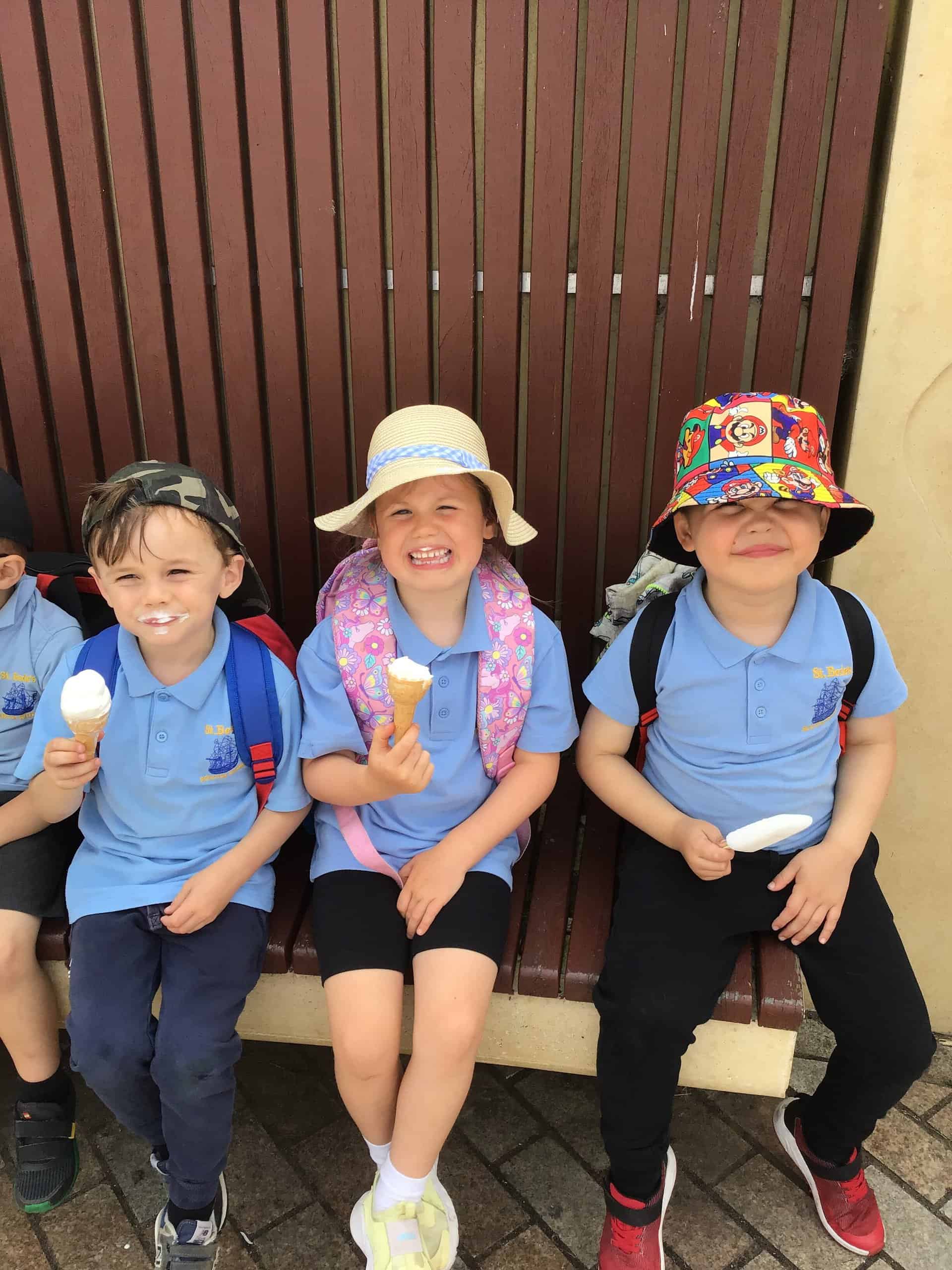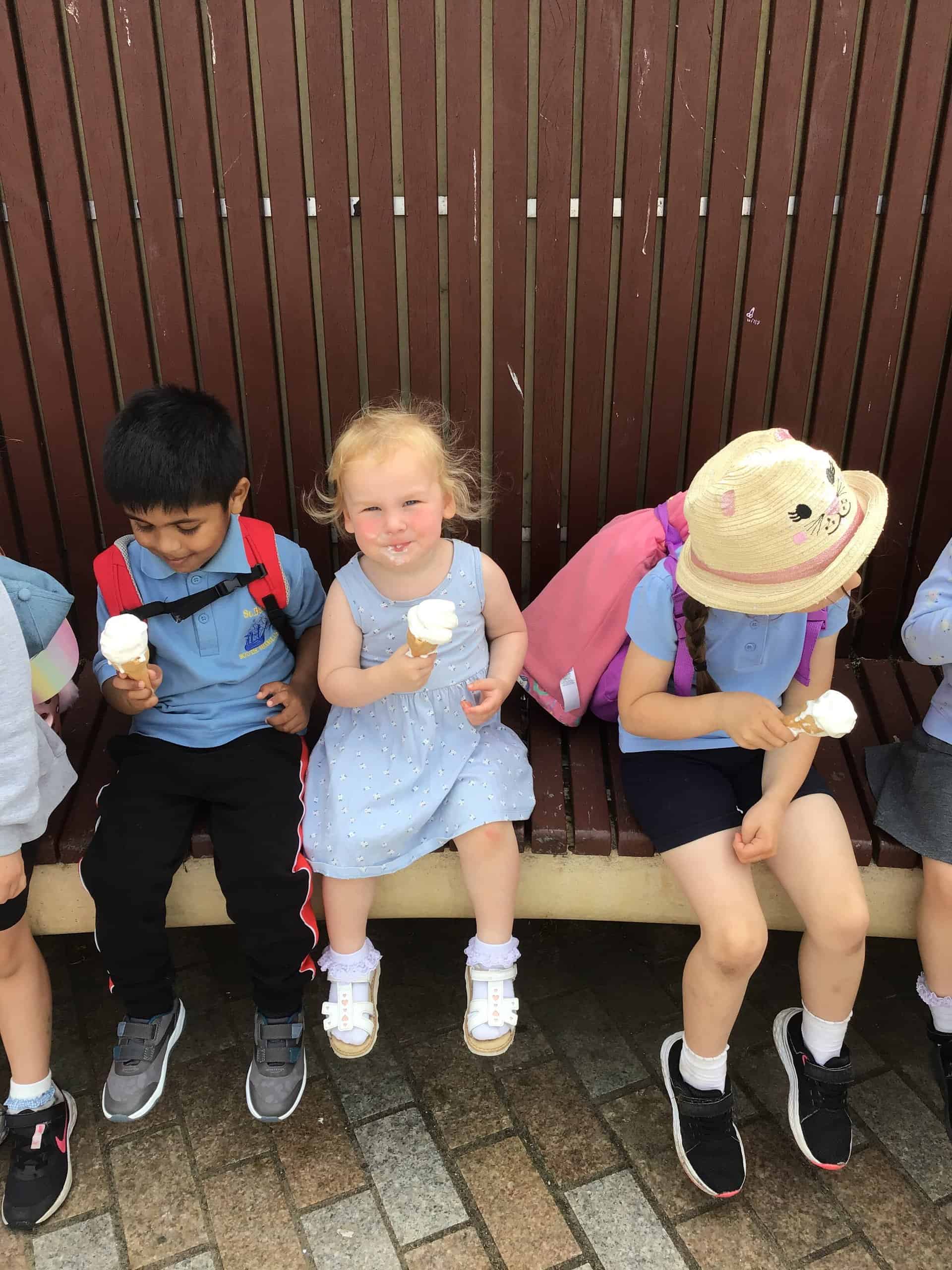 Then, they spent some time in the play park on the climbing frames and swings. Of course Miss Langley had to join in! To cool off, the children had ice creams and lollies. I think more ended up on their faces than in their tummies!