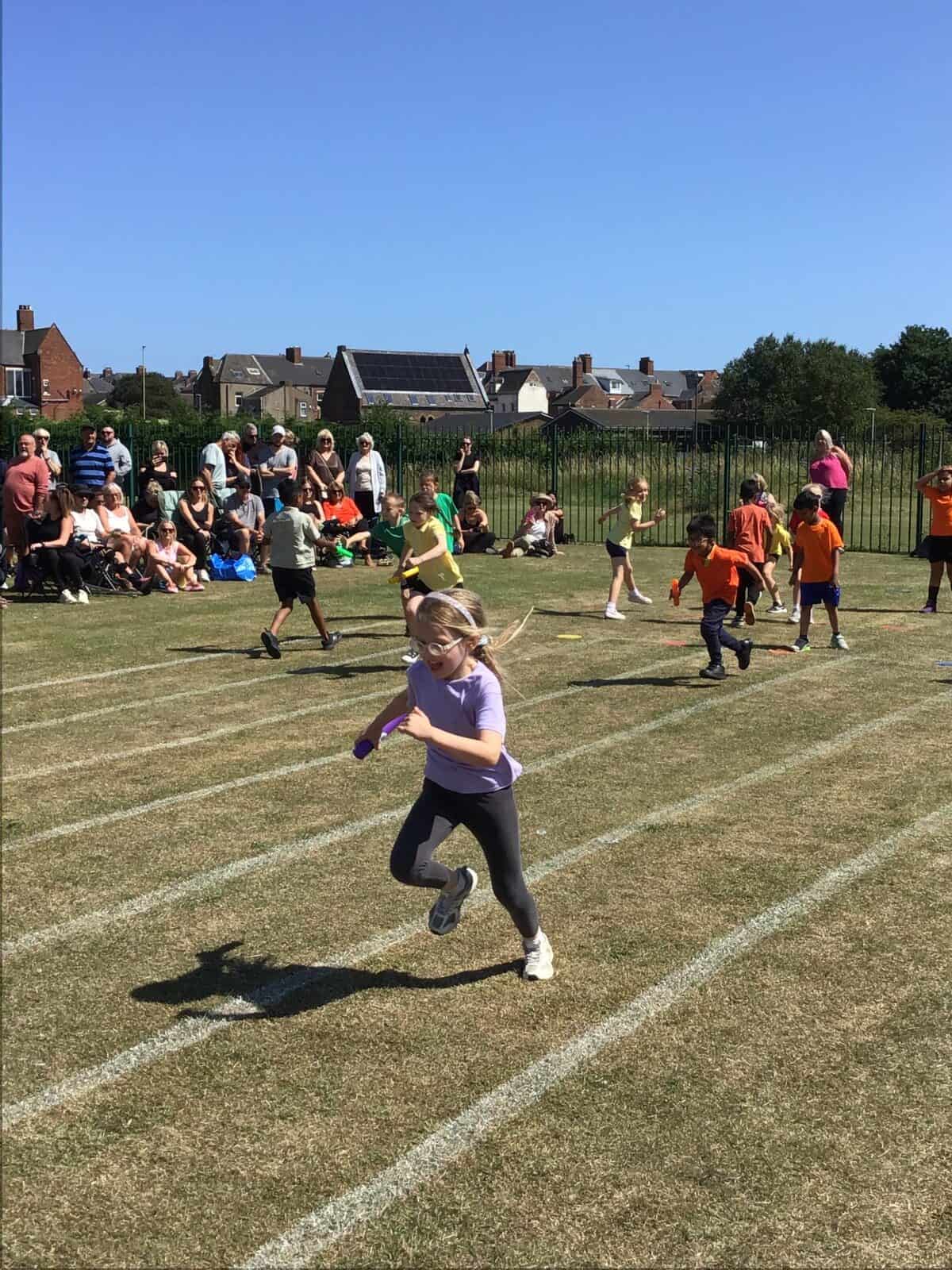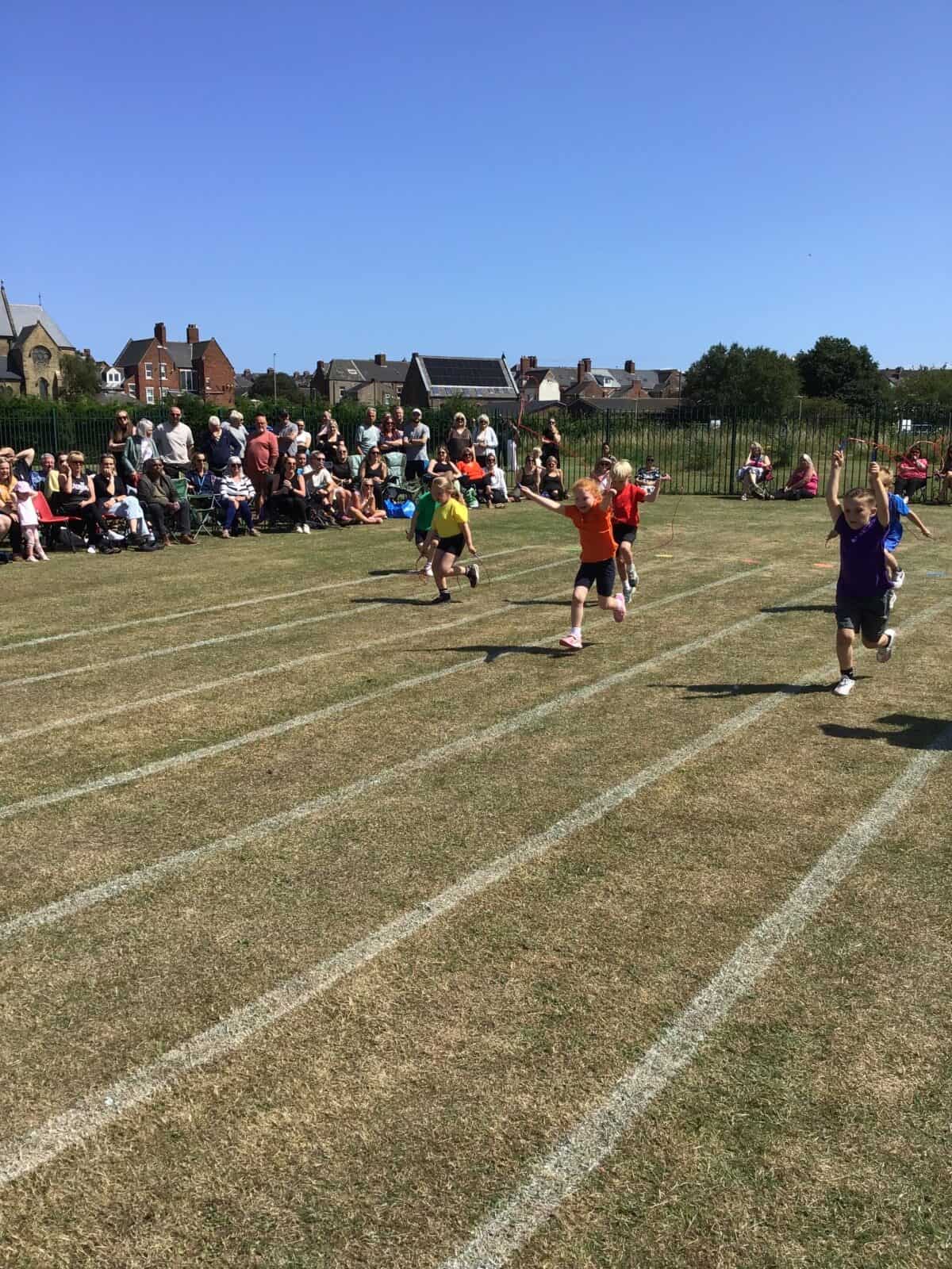Well done to all of our children who enjoyed taking part in our Sports Day in such a positive spirit in the South Shields sunshine. It was great to see them supported by our wonderful school community with so many warm smiles on the day. Congratulations to Bernadette who retained their title by a narrow 3 points with the event going down to the final race. Thank you once again to everyone who made this a lovely community event.