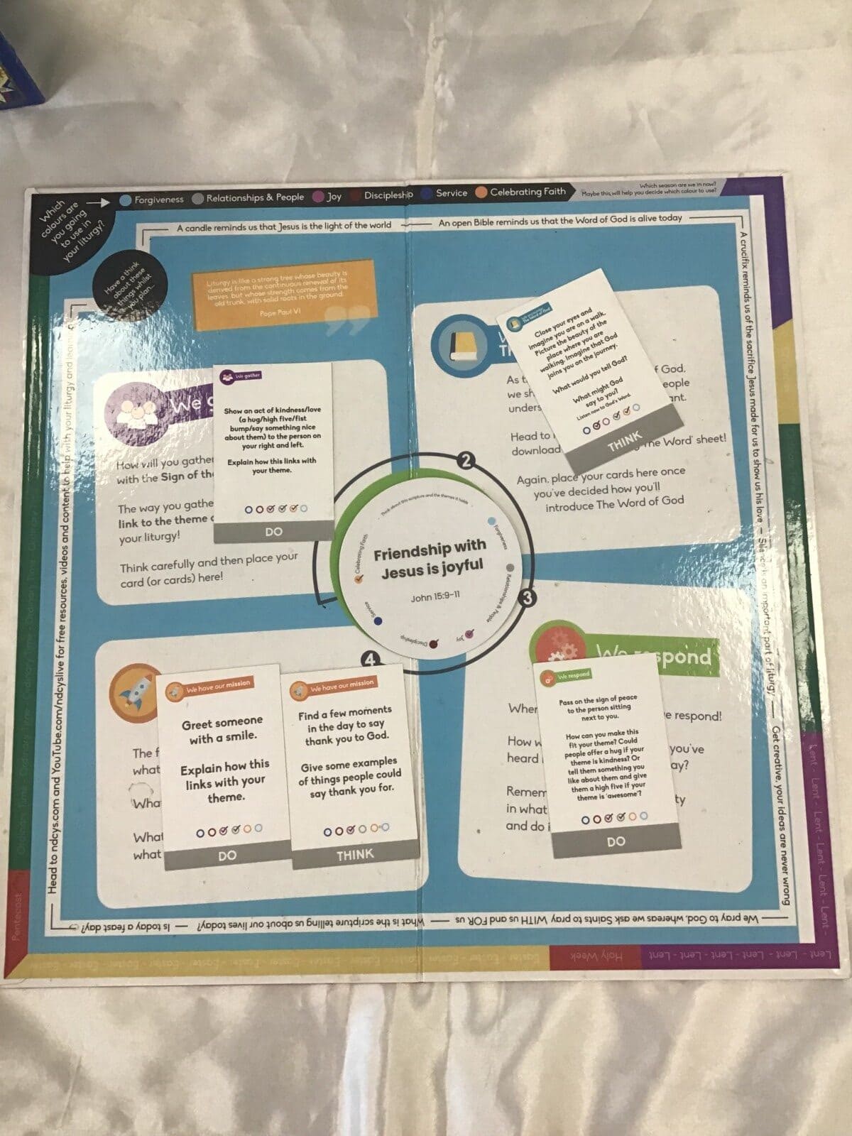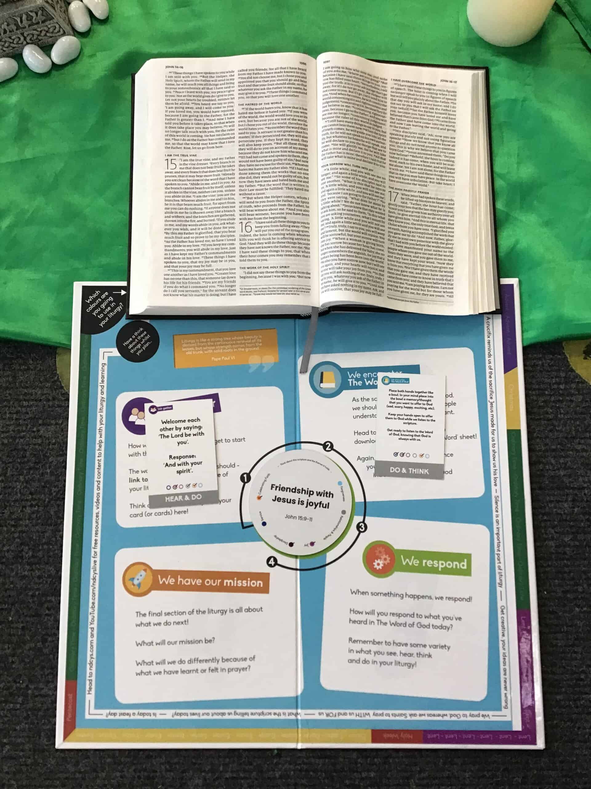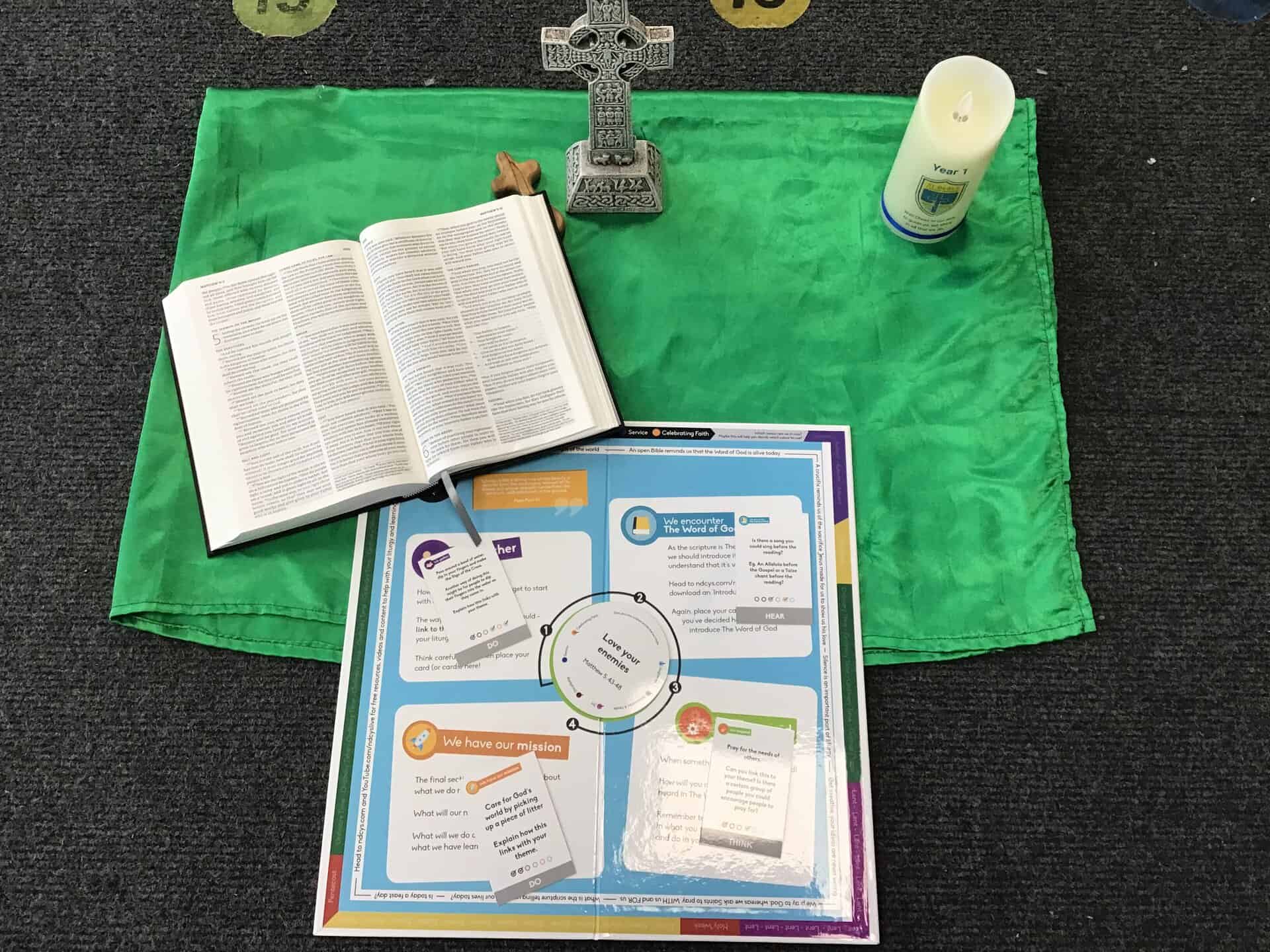 Parents were invited into school to share in our Celebration of the Word as we celebrated God’s unconditional love and forgiveness. At the end of our Celebration of the Word, the families were given a mission to show love and care for others, letting their light shine. The children gave their parents a leaf on which to write (with their child) how they would follow our mission. At the end of the COTW, parents were given a Good Shepherd’ prayer card to take home.