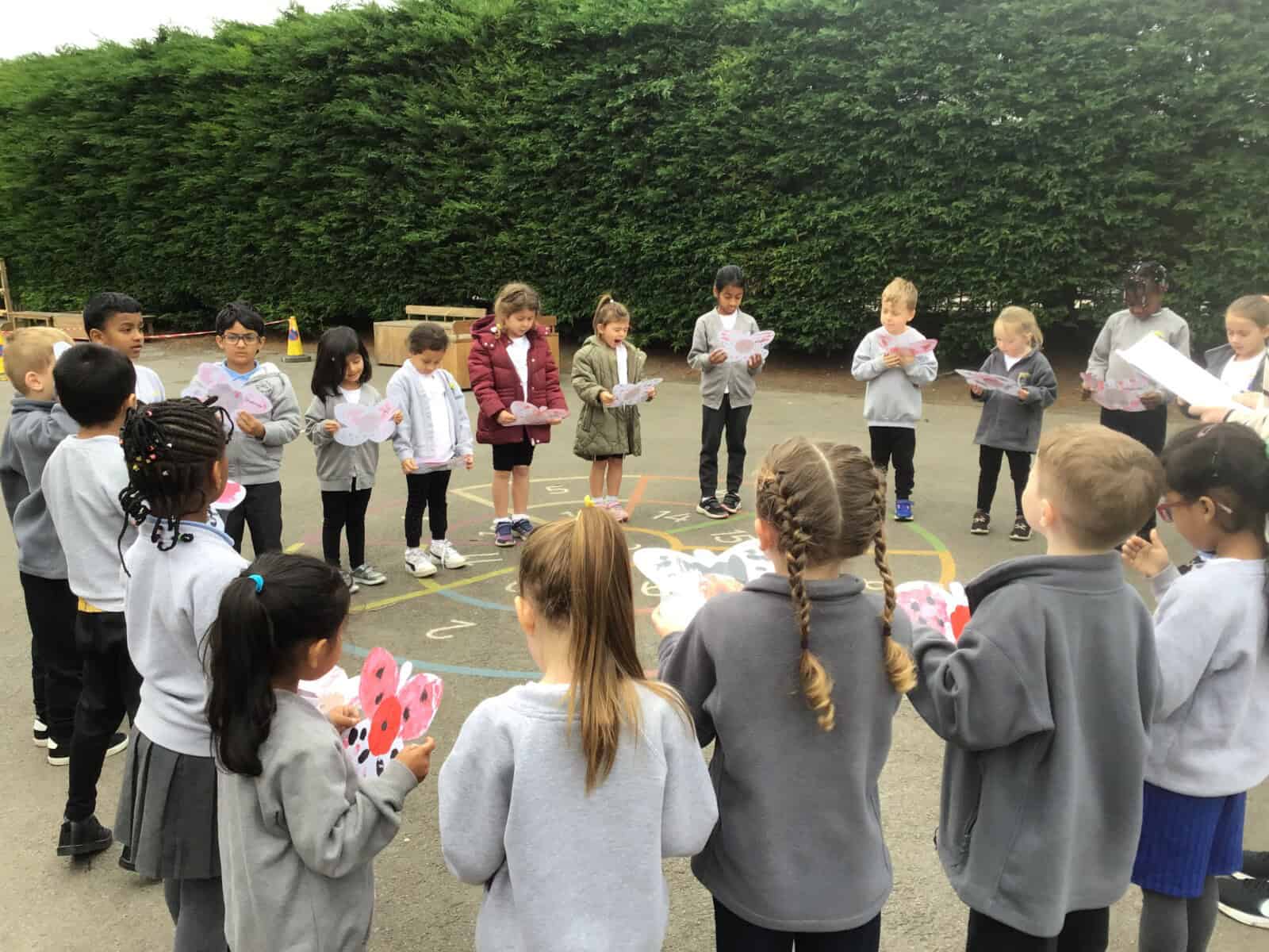 Year 1 took time to learn about Remembrance Day and reflect on why it’s important. The children created beautiful poppy handprints using paint to honor those who have served and sacrificed. Alongside the poppies, they made prayer butterflies as a symbol of hope and peace.