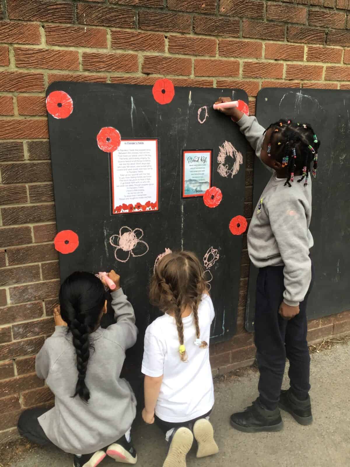 We gathered together to say a short prayer, showing our respect and gratitude. Their thoughtful artwork is now displayed outside, ready to be seen by everyone in our school community. It’s a meaningful reminder of the importance of remembering and honoring others.