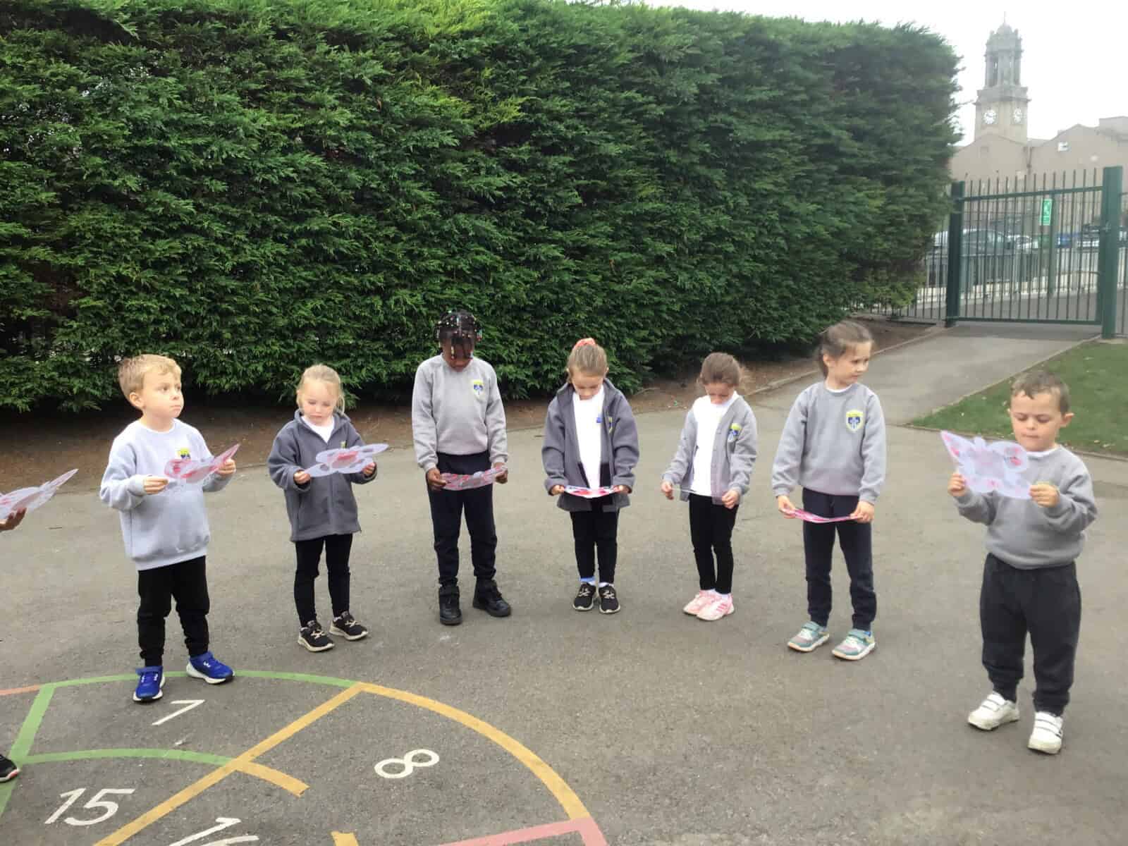 Year 1 took time to learn about Remembrance Day and reflect on why it’s important. The children created beautiful poppy handprints using paint to honor those who have served and sacrificed. Alongside the poppies, they made prayer butterflies as a symbol of hope and peace.