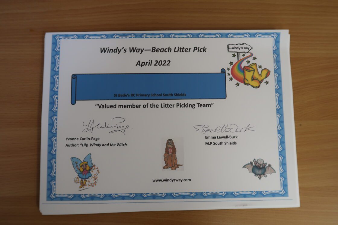The Y3 children have been litter picking at our seafront. They have been inspired to get involved in looking after our coastline after reading Yvonne Carlin Page’s fictional story of Lily Windy and the Witch. One of the themes connected to the book is conservation of ‘Windy’s Way’ a local setting in the book.