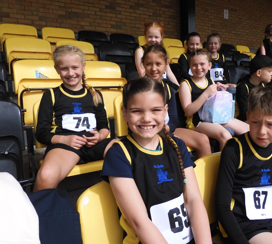 Three St. Bede’s teams enjoyed competing at Monkton Stadium in the South Tyneside Athletics competition today! There were lots of excellent personal best performances with our A team finishing 4th, agonisingly just outside the medals despite their very best efforts. The B team came a highly creditable 7th too in a brilliant event, that was keenly contested by the 21 teams involved.