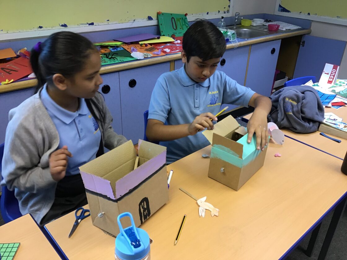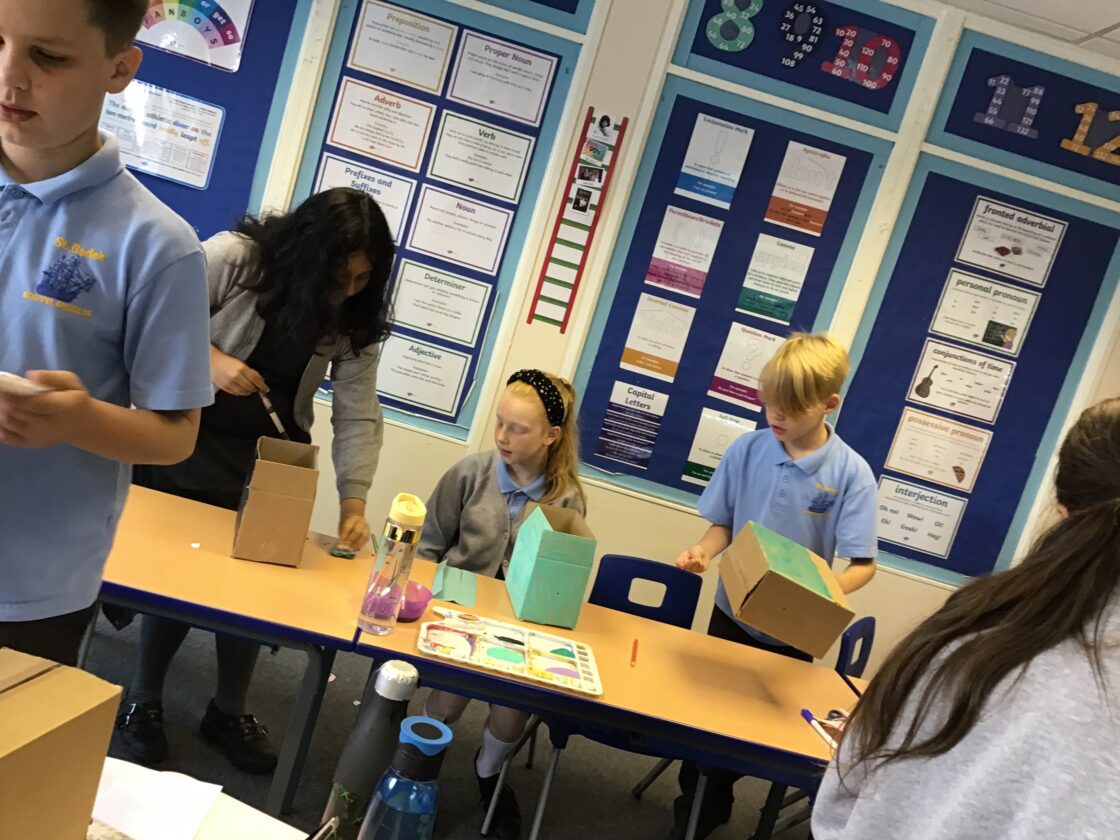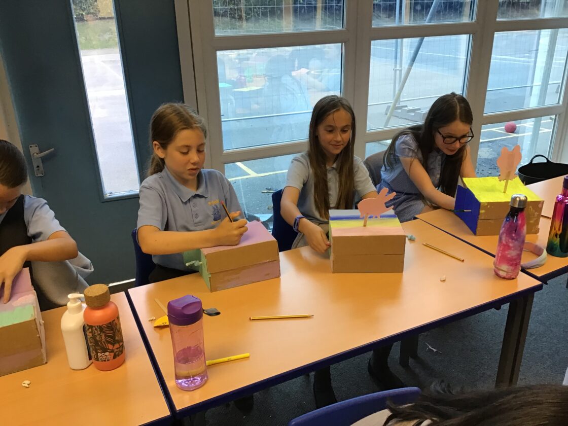 In History, Year 5 have been studying the Anglo-Saxons. As part of our DT project, the children made their own Anglo-Saxon houses. They experimented with frame structures and how to reinforce their frames to make them stronger. After designing their houses and surrounding landscapes, the children made their designs come to life this week with Mrs McDonald and Mr Maratty. Their attention to detail was very impressive! Once finished, we took our creations outside to make our own settlement.