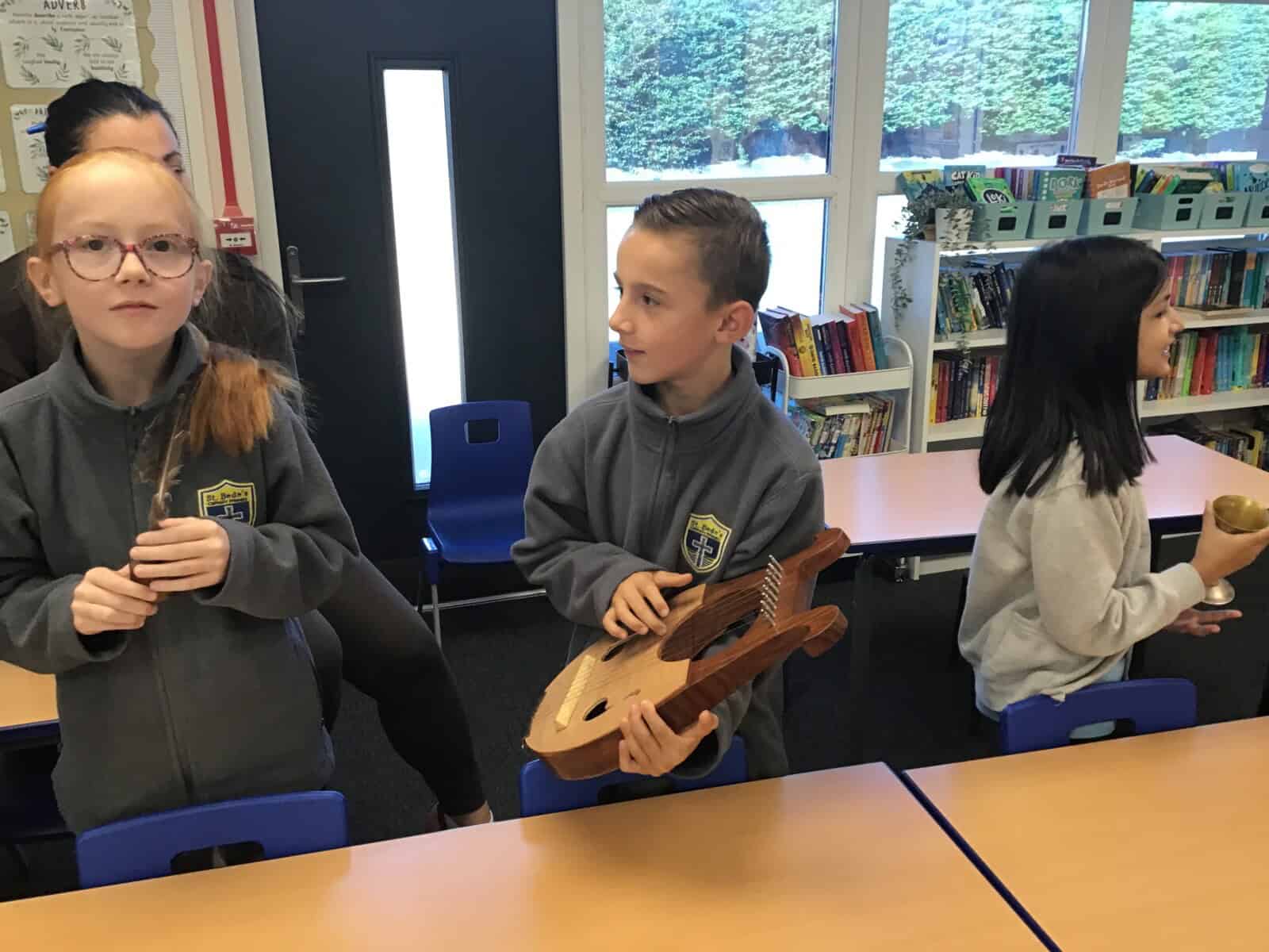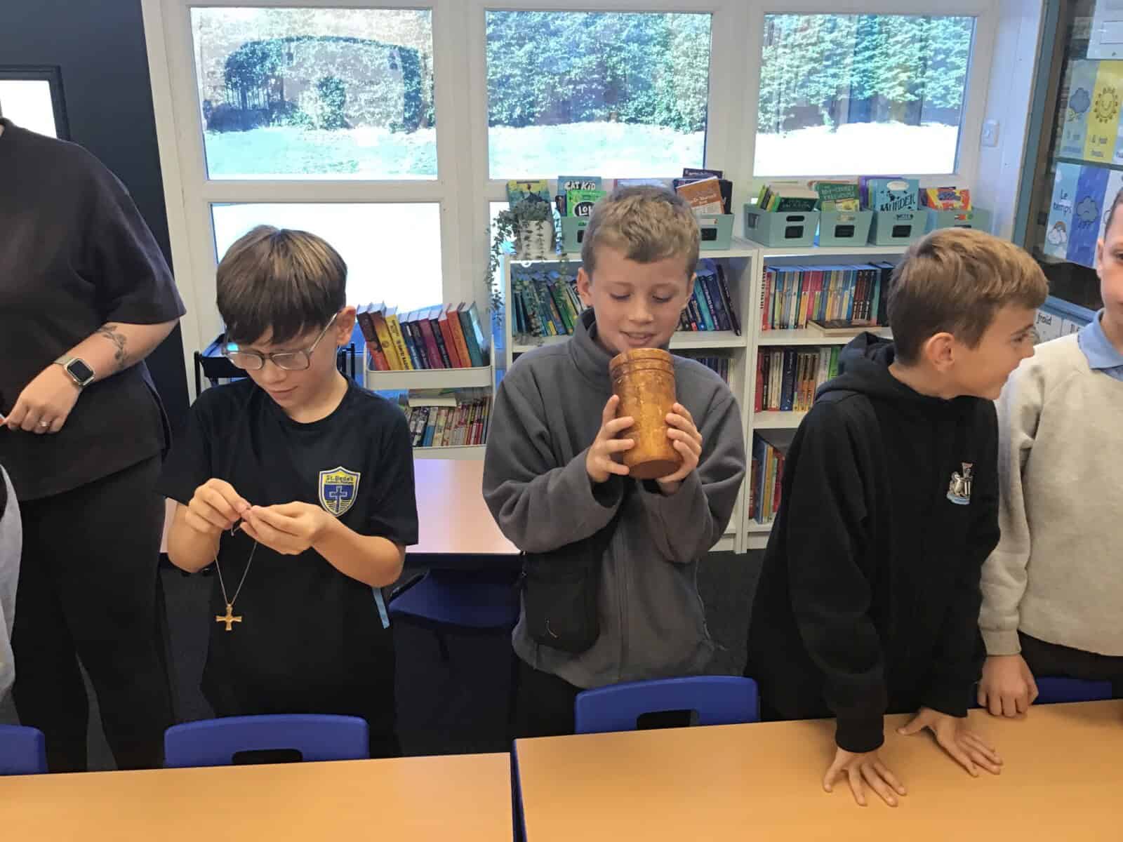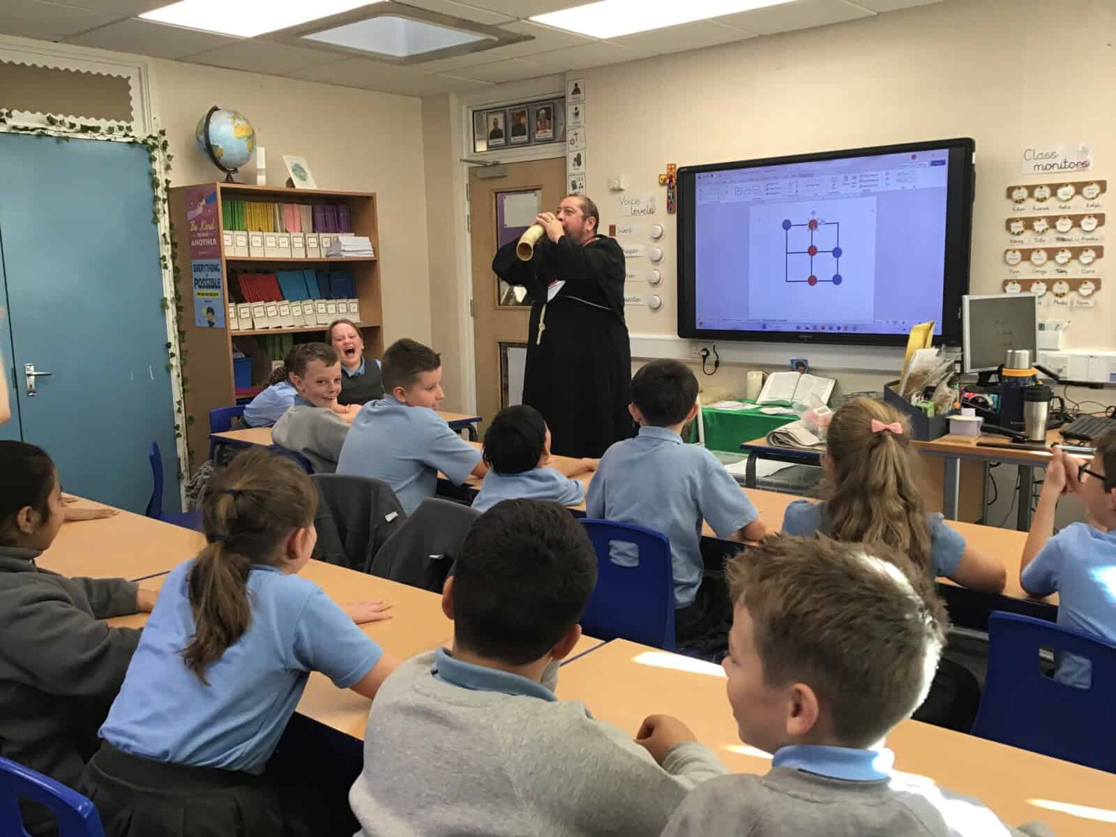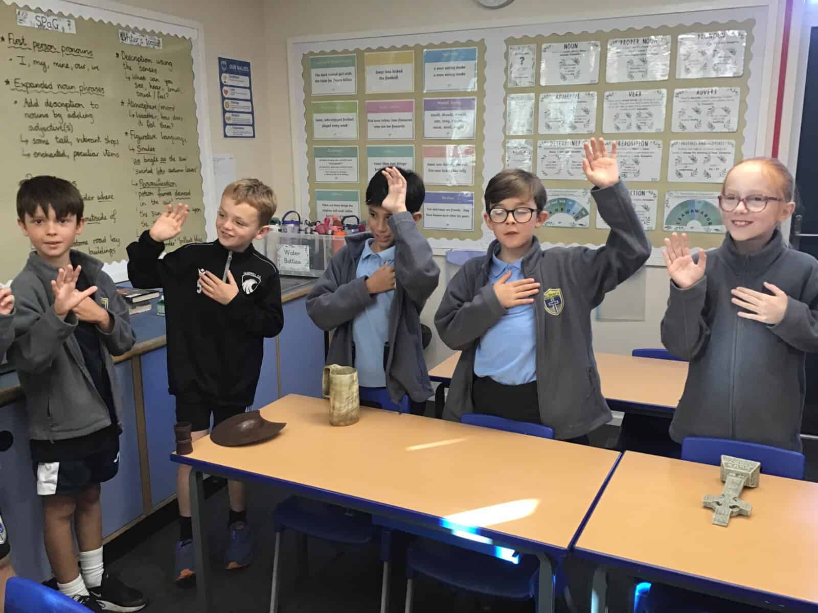 We explored the lives of Anglo Saxon monks and discovered how important they were. Richard really brought the past to life as he shared many aspects of Anglo Saxon times with us. The pupils loved learning sign language that was use by Anglo Saxon monks and handling different artefacts. Just as Richard intended, we learned lots and we had lots of fun!