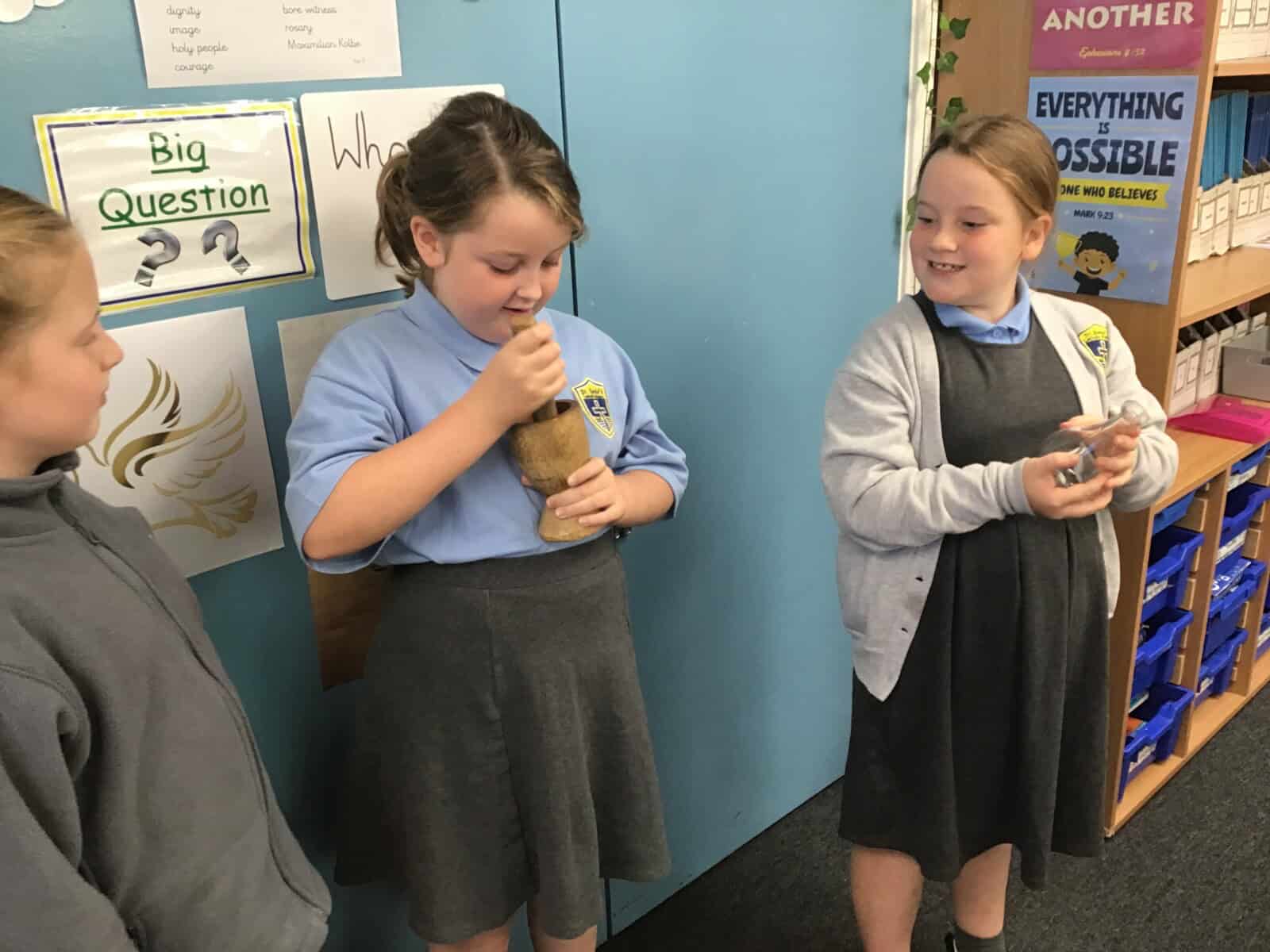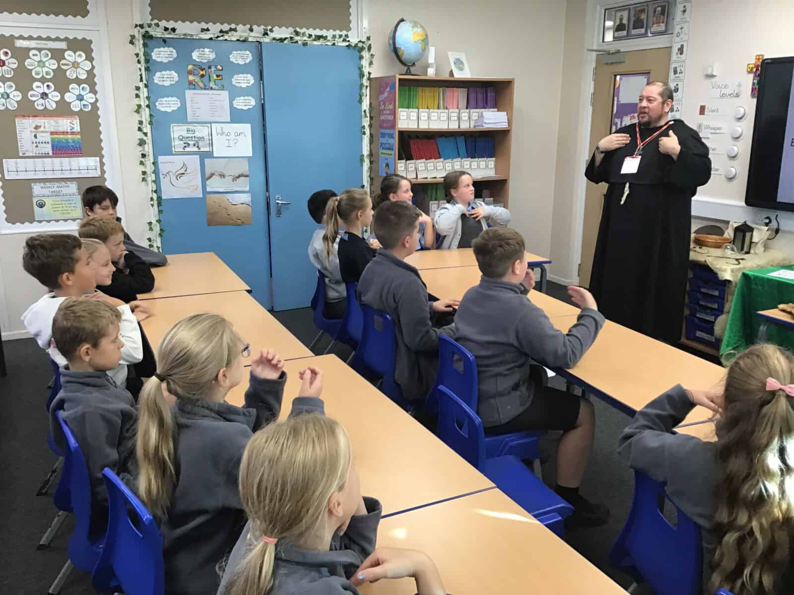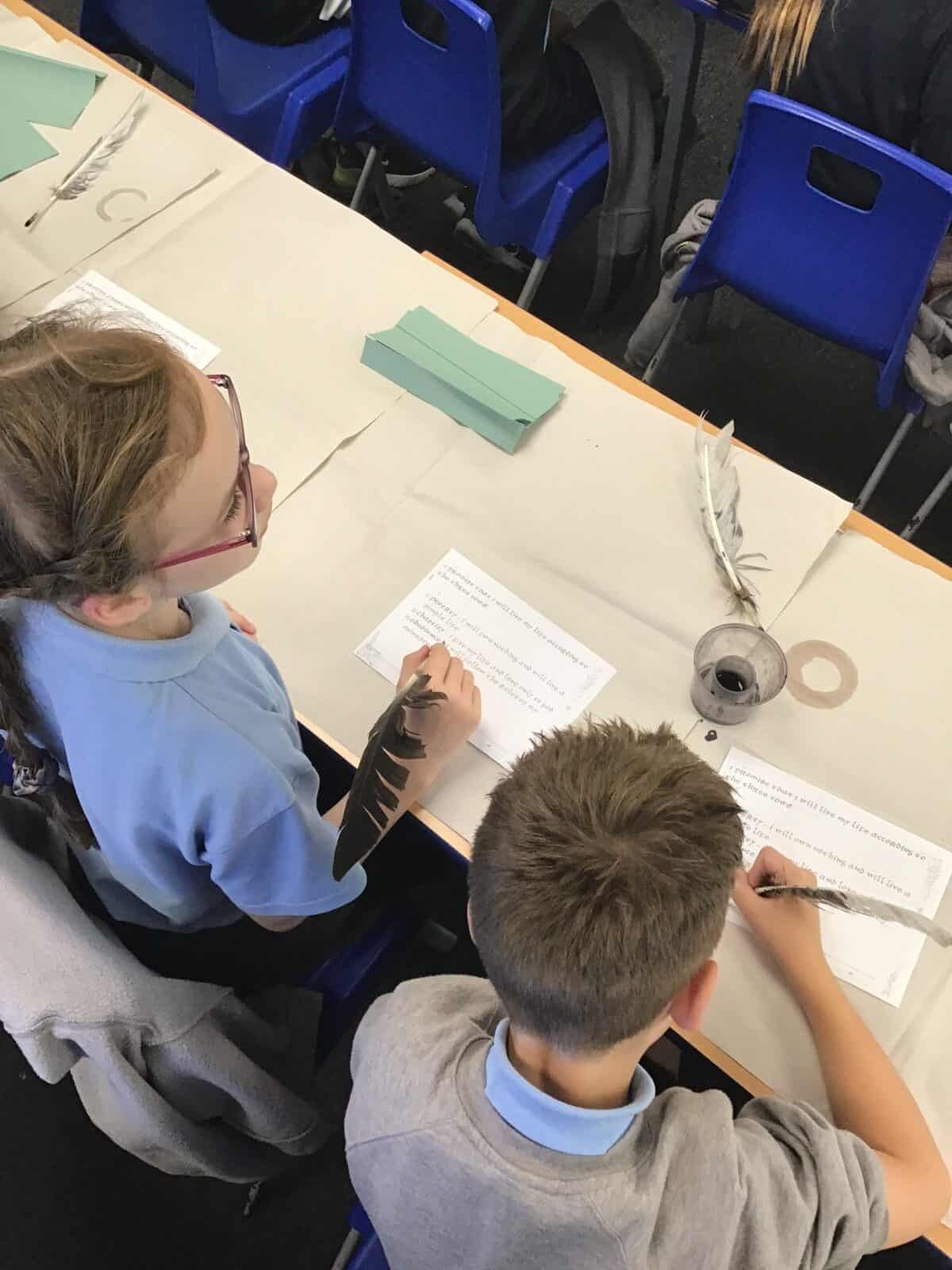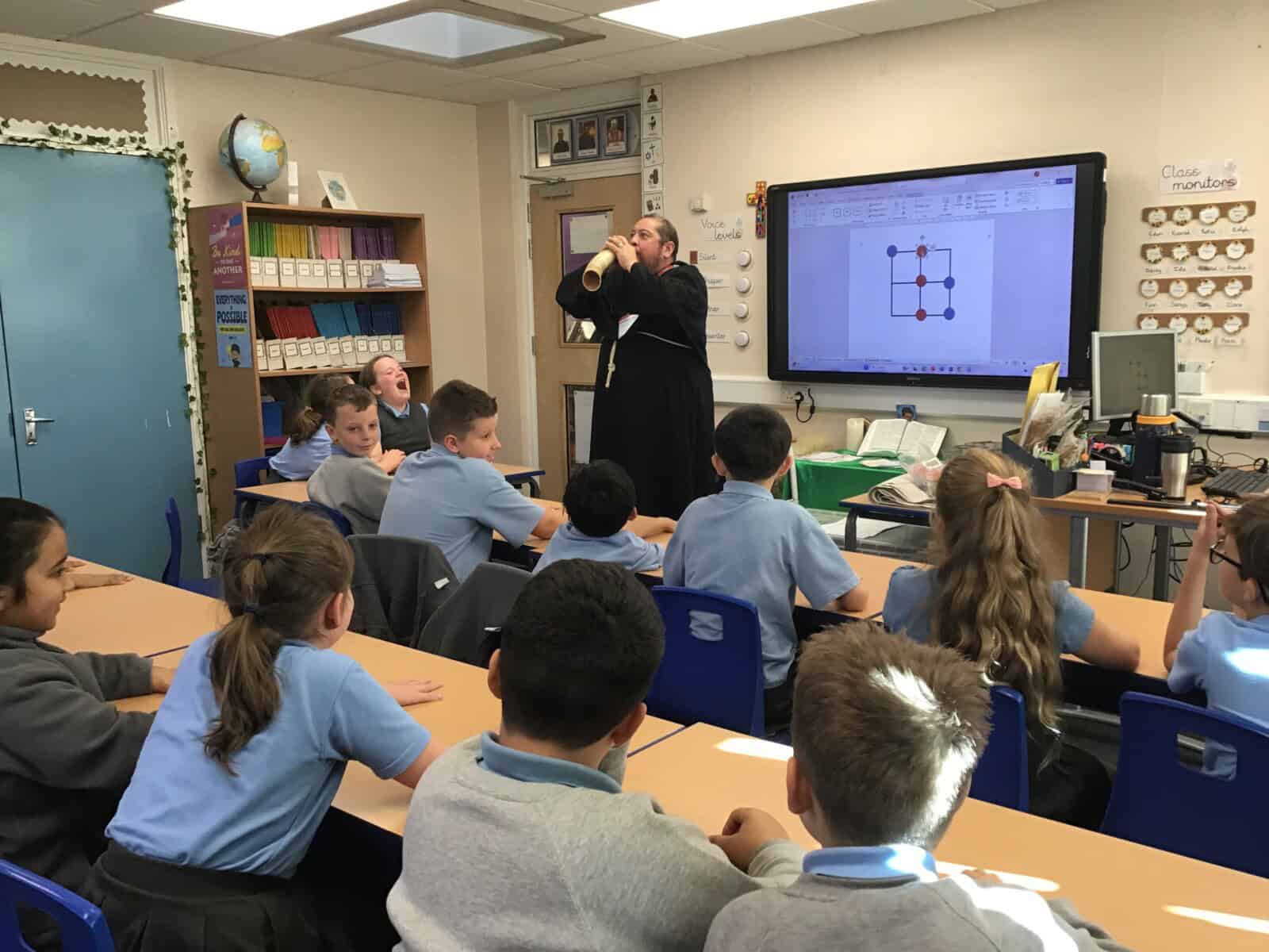 We explored the lives of Anglo Saxon monks and discovered how important they were. Richard really brought the past to life as he shared many aspects of Anglo Saxon times with us. The pupils loved learning sign language that was use by Anglo Saxon monks and handling different artefacts. Just as Richard intended, we learned lots and we had lots of fun!