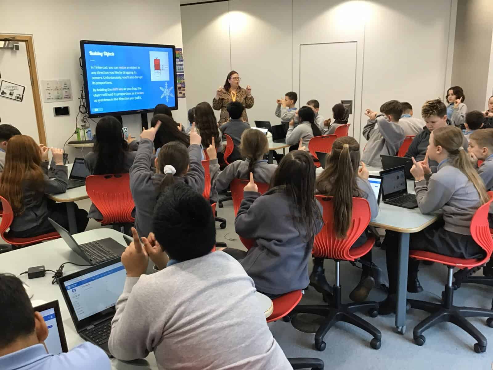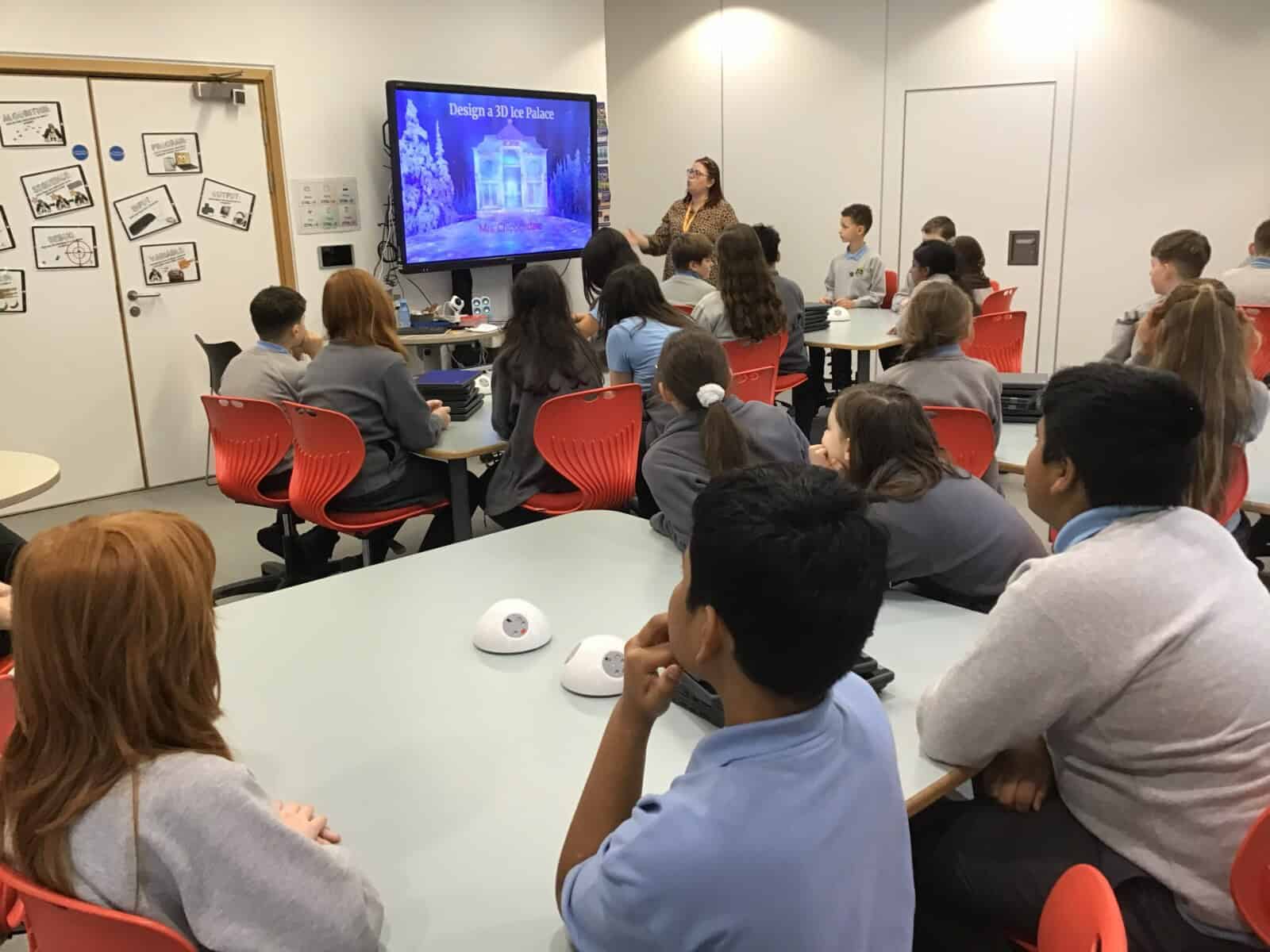 During their workshop, pupils used Tinkercad, a 3D design platform that introduces young learners to CAD (Computer‑Aided Design) in a fun, accessible way. The task was to design their very own ‘ice palace.’