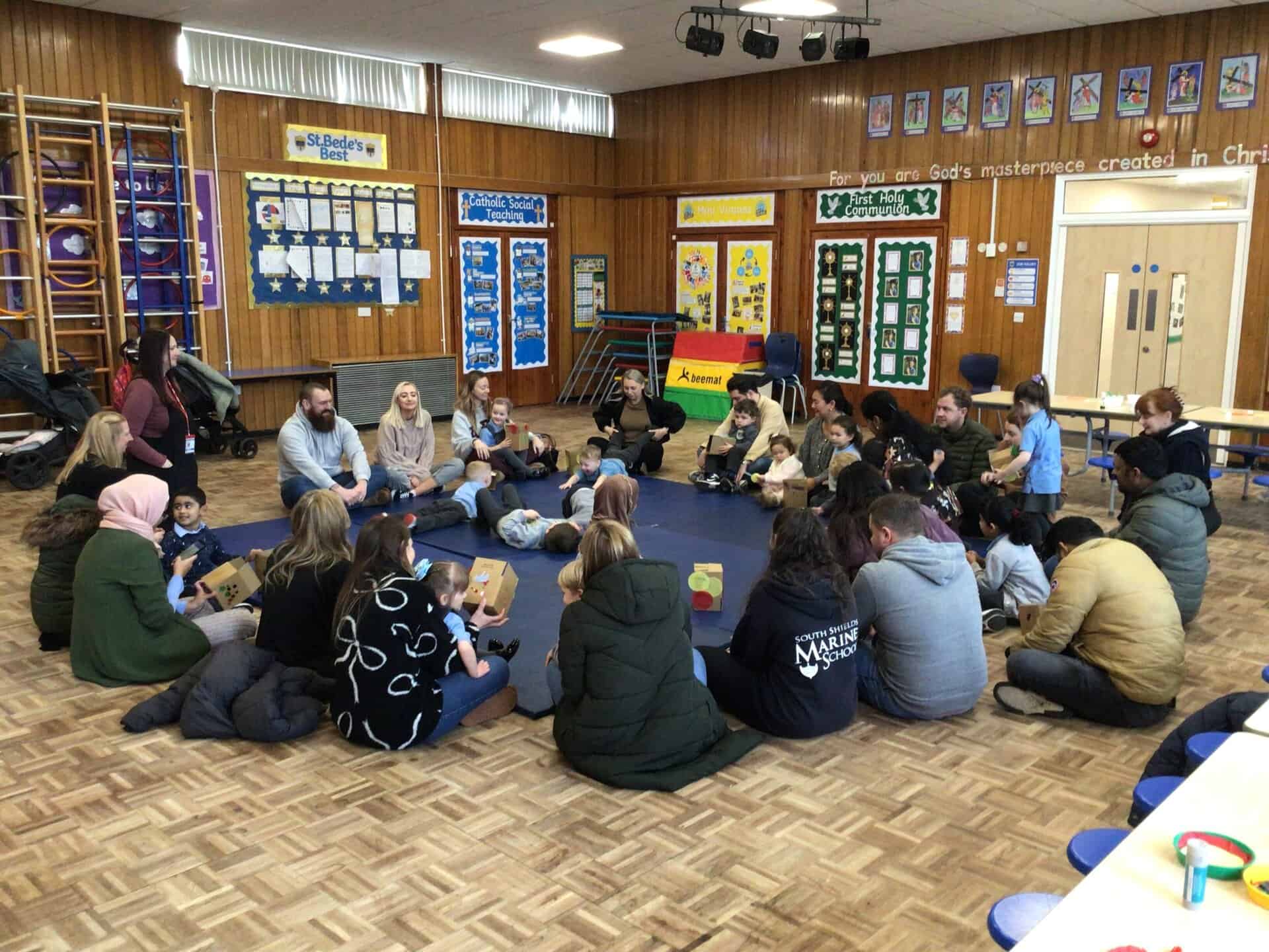 A new partnership with South Tyneside Family Hubs is beginning to take shape in school and today marked an exciting first step. We welcomed a group of our EYFS parents and children to launch a six‑week Early Words programme—an initiative designed to strengthen the communication and interaction skills of children aged 3–4 while giving families practical tools to support learning at home. The session created a warm, collaborative atmosphere, with children and adults exploring early language activities together and building confidence through shared play and conversation.