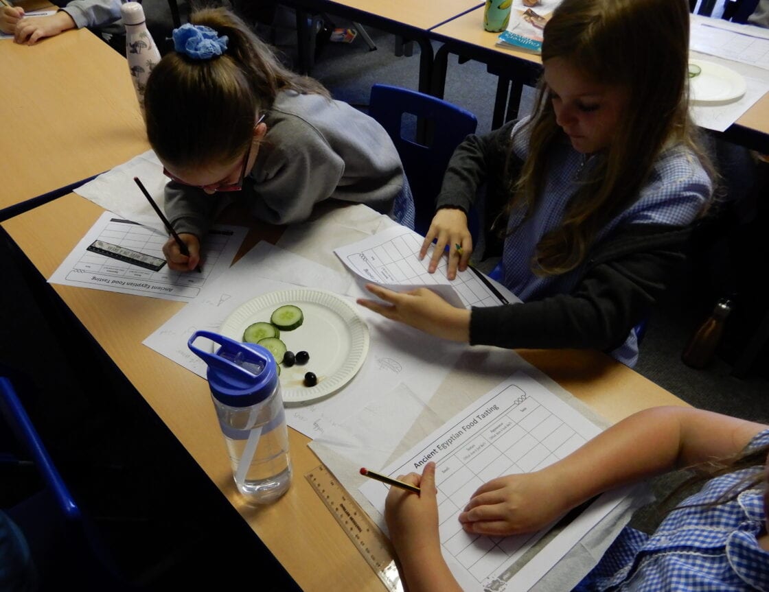 Y3 enjoyed a delicious banquet as they discovered the different foods that the Ancient Egyptians enjoyed. Children considered the texture, appearance, smell and most satisfyingly the taste of the dishes; that included baba ghanoush, hummus and falafel. The food was very popular and the children concluded that they would be very happy to eat like an Egyptian!