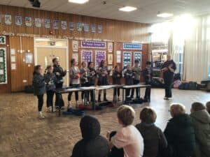 They shared a brilliant mix of singing, ukulele playing, and keyboard work, using GarageBand to add creativity and fun to their music-making. The audience were treated to a selection of songs, including favourites such as “Soda Pop.”