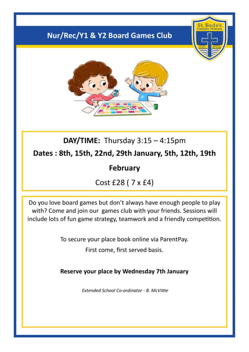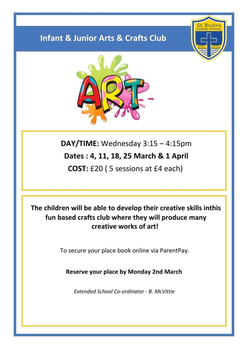 School Clubs Spring 1 – 2026 Our after school clubs are now live and available to book via ParentPay!