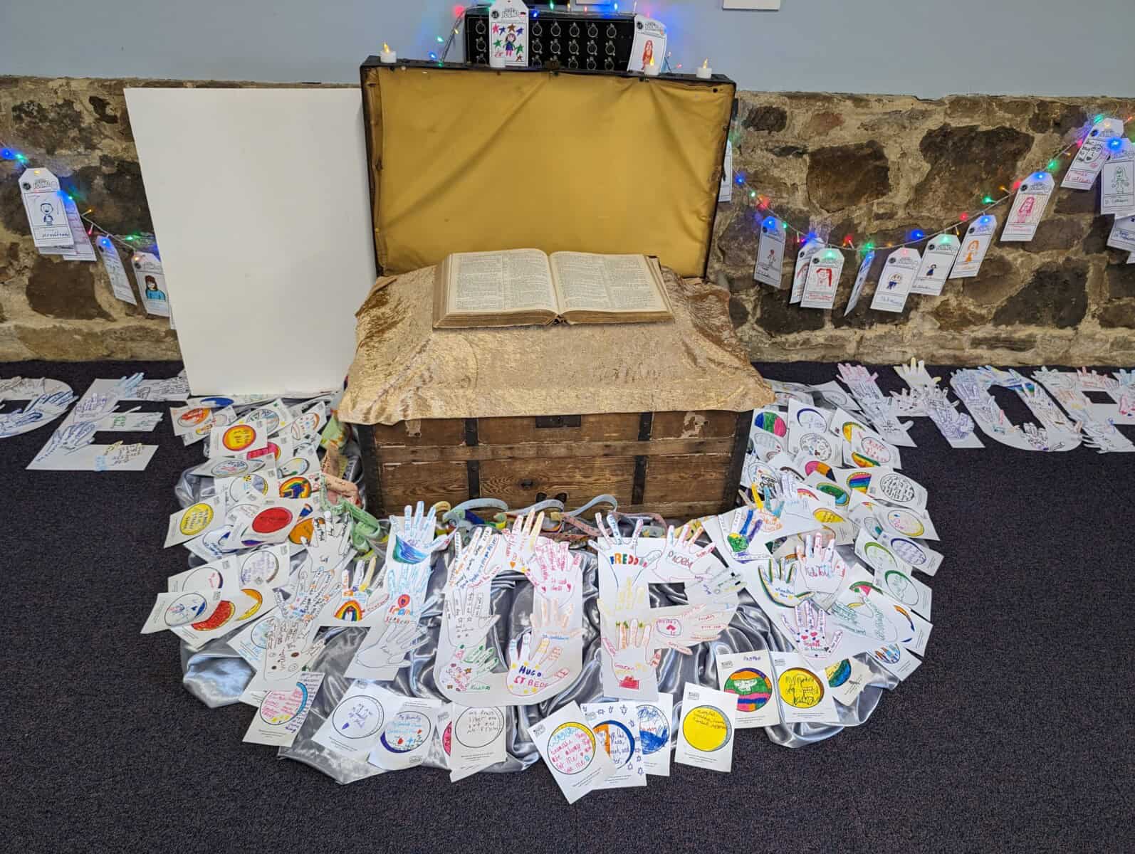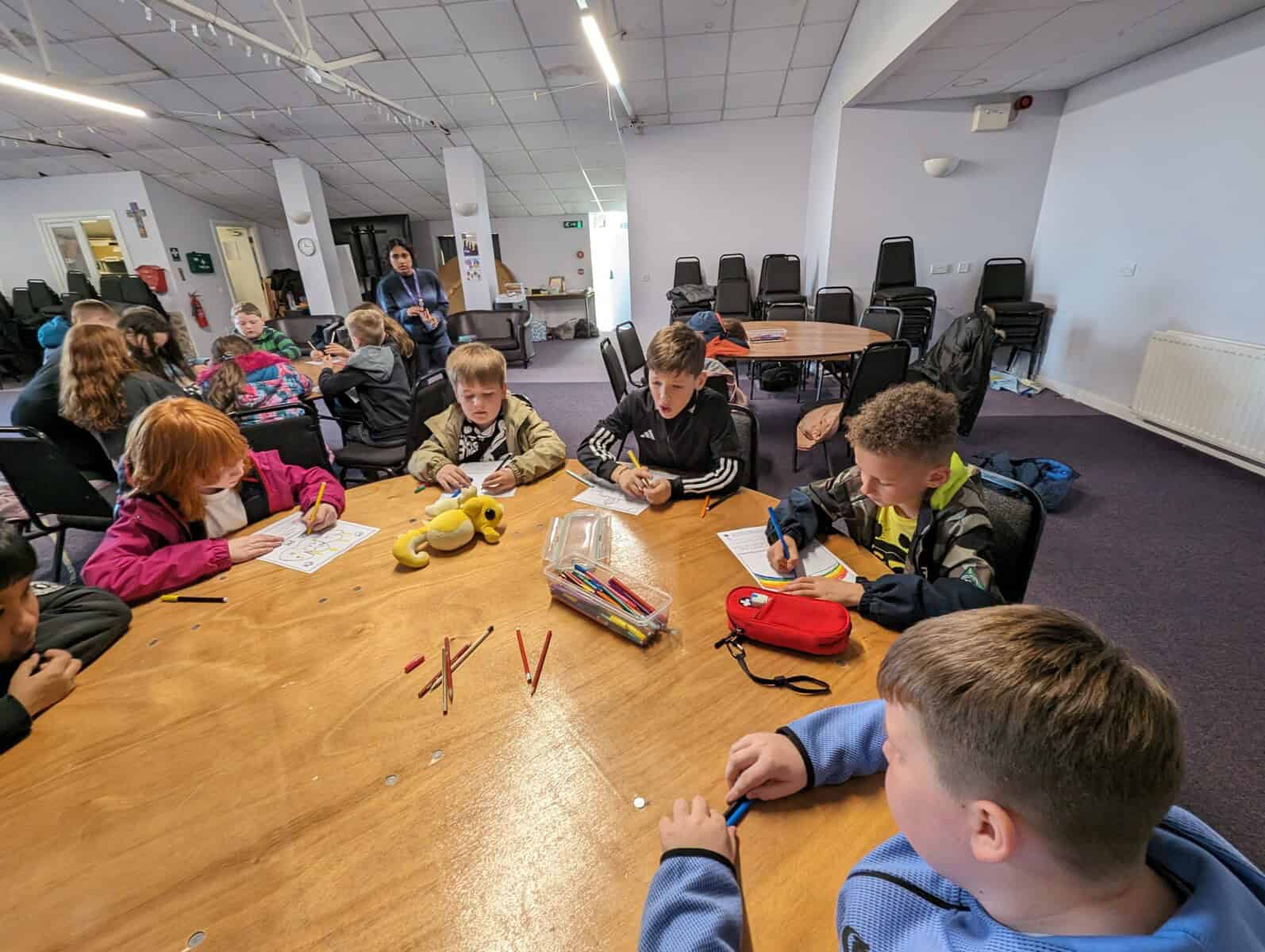 This morning, the children completed a carousel of activities including making gratitude bracelets for someone they’re thankful to, a team building activity, getting creative with art and learning to sign the Our Father.