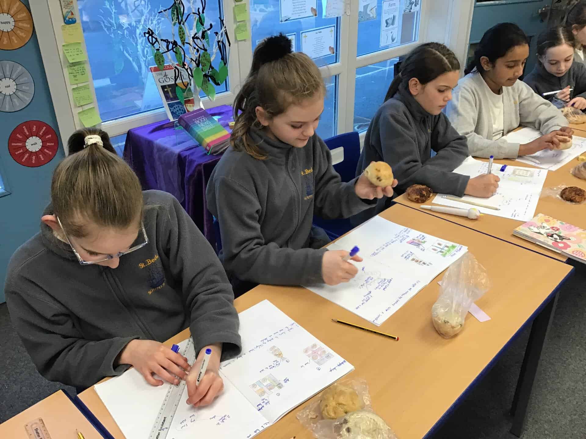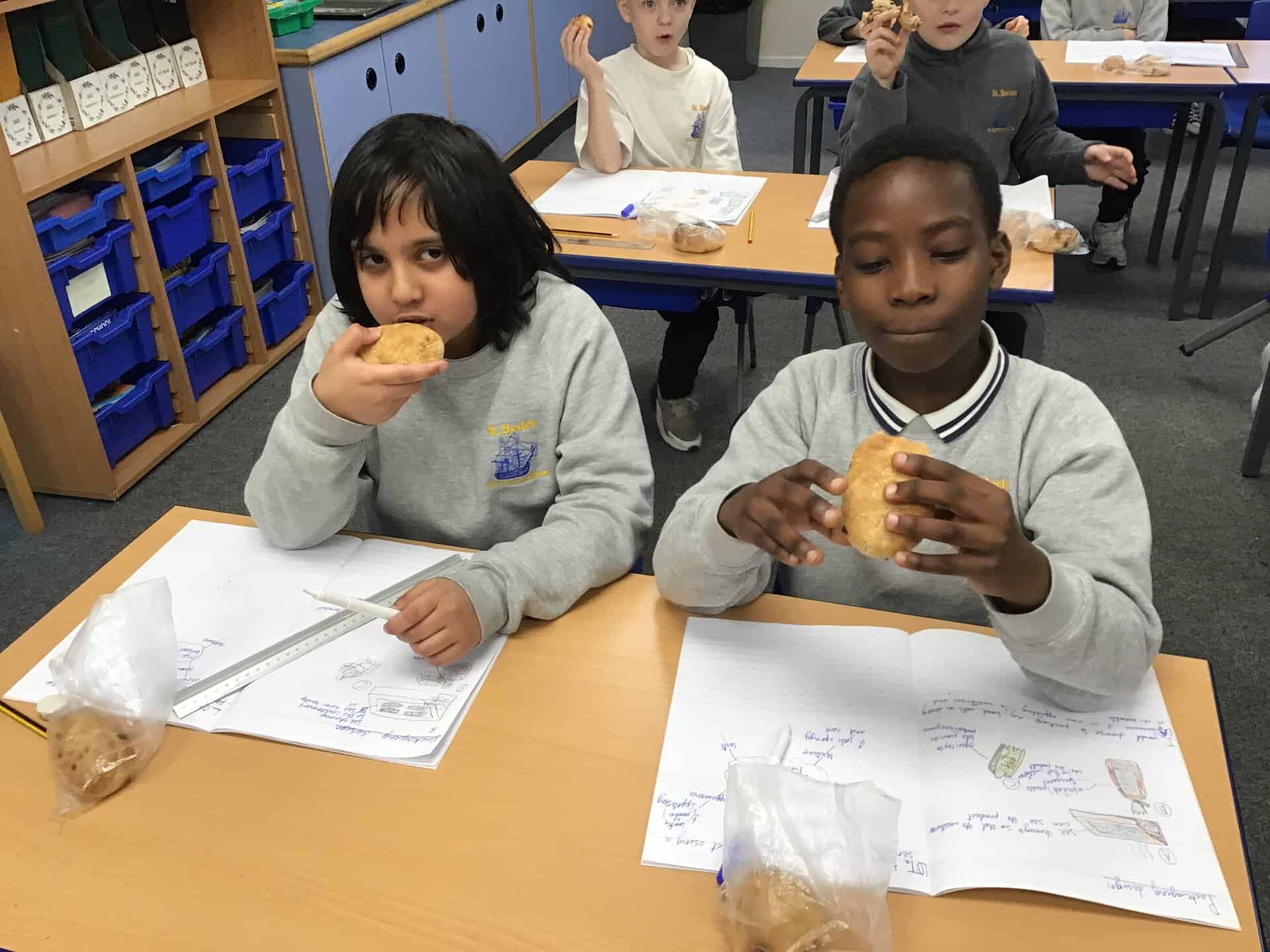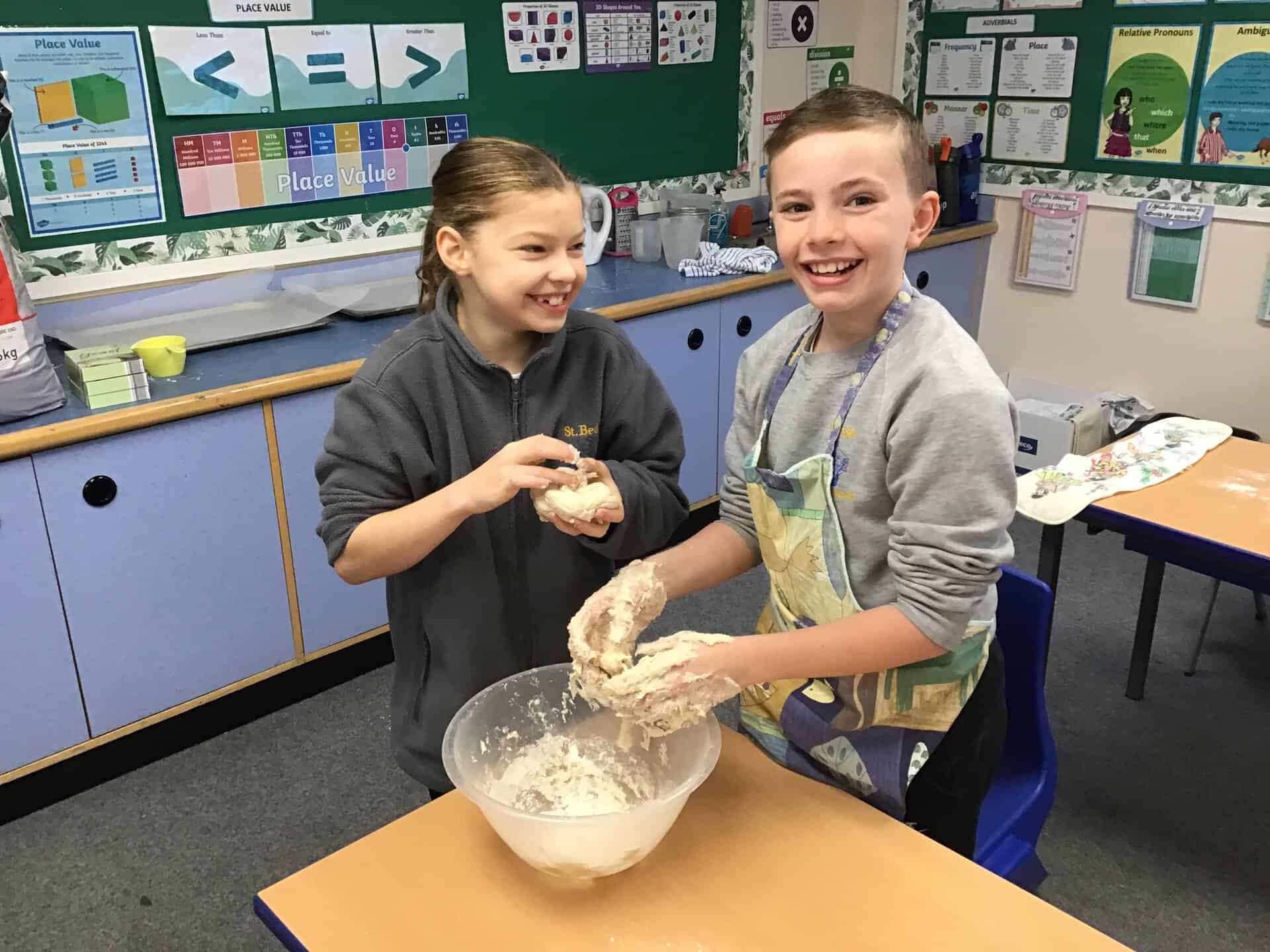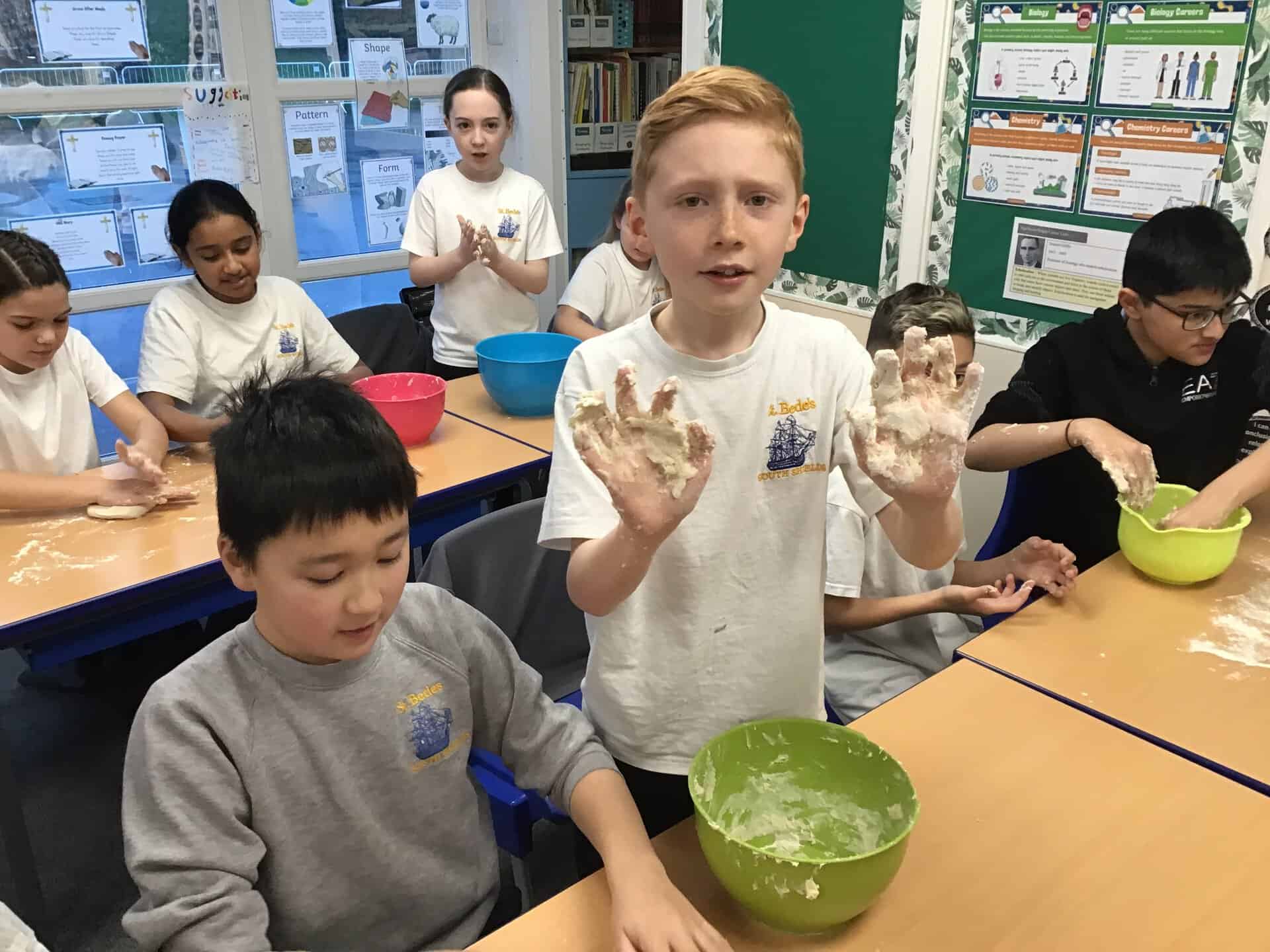 In their DT work, the children in Year 5 have been studying the process of making bread. They designed their own product and altered a basic recipe by adding their chosen flavour combinations. At the end of the unit, we saw their designs come to life as they baked, tested and evaluated their products. The children worked so well and were very happy with the results of their hard work! Here are some p